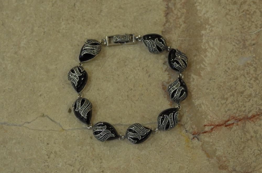 【フランスヴィンテージアクセサリーレディース】ブレスレット バングル オニキス天然石 銀シルバー925 一点もの パリ