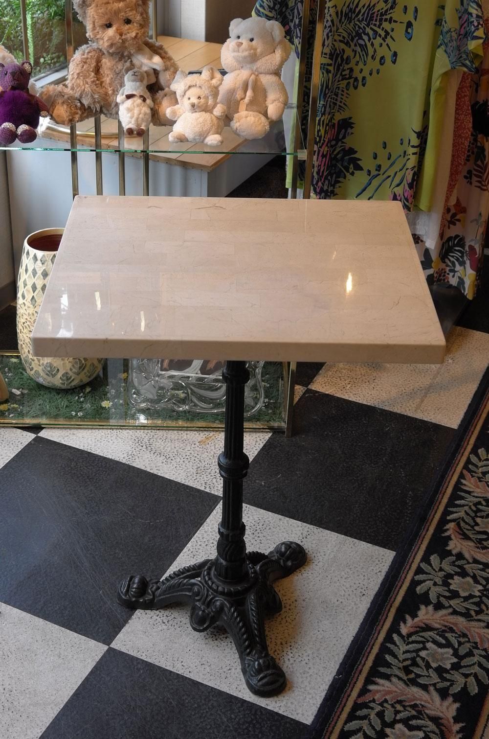 【フランスヴィンテージ家具】カフェテーブル スクエア二人テーブル トラバーチン天然大理石 高級家具モビリア製mobilia 1980年代 インテリア パリ