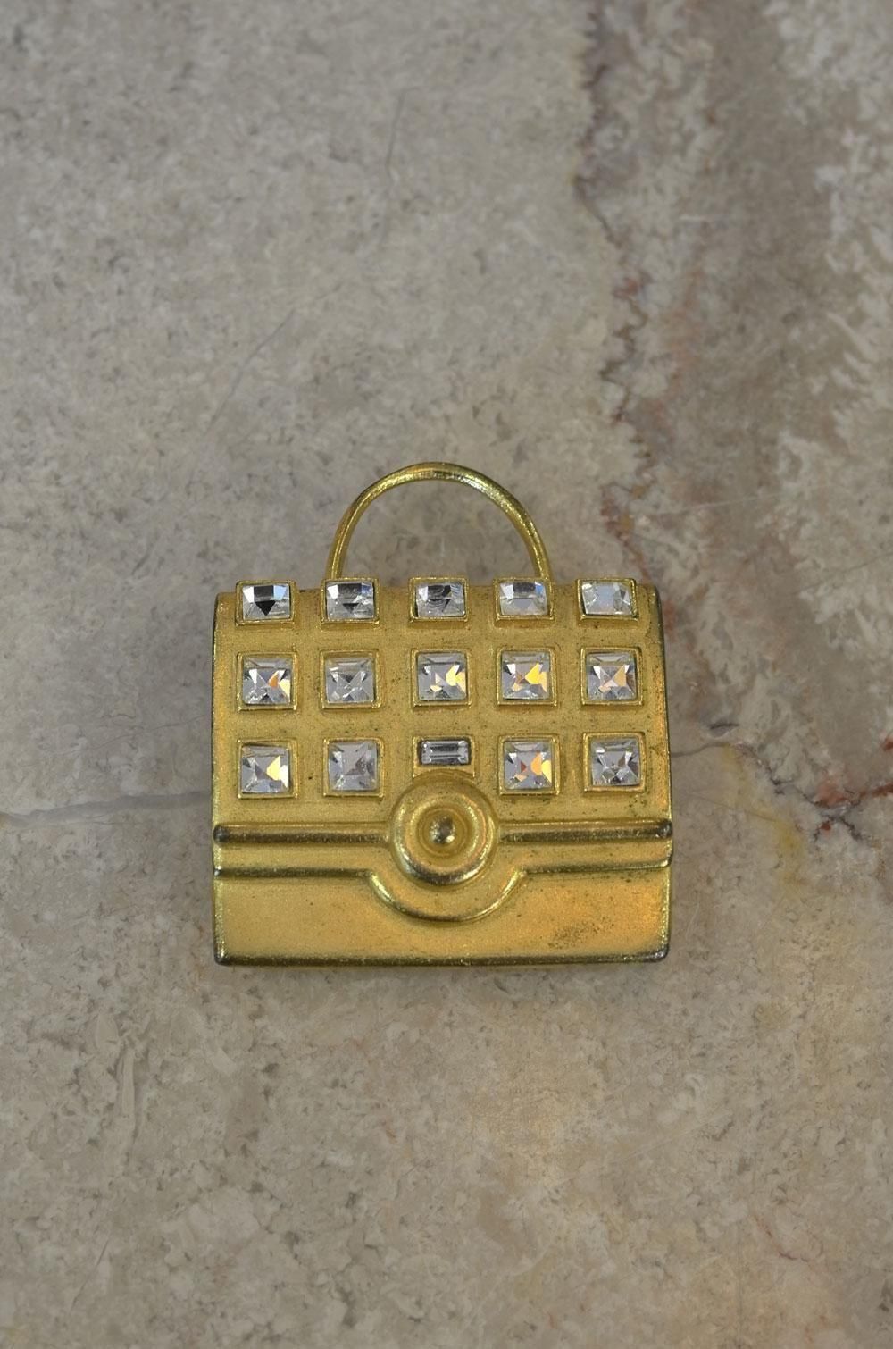 【フランスヴィンテージアクセサリーレディース】ブローチピンバッジ ハンドバック ラインストーン 金ゴールド 一点もの ファッション パリ
