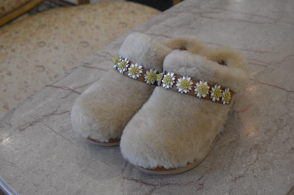 【フランス新品ファッション雑貨レディース】FABRIZIO VITI サボ ムートン羊 38(24)花飾り ハイブランド ファブリツィオヴィティ ルイヴィトン パリ