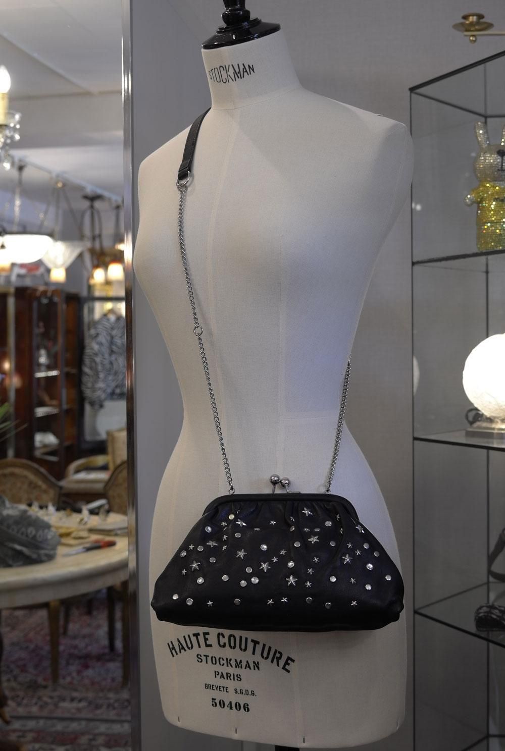【フランス新品アクセサリーレディース】blumarine ポシェットショルダーバック 星鋲 上質黒革 ハイブランド ブルマリン パリ