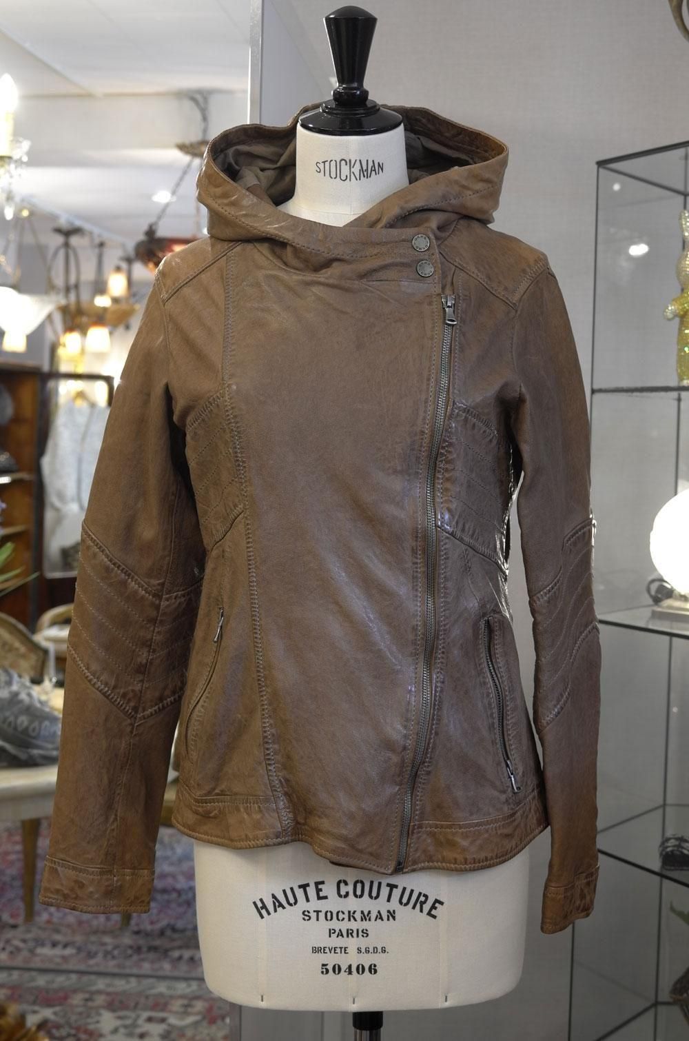 【フランス新品ファッションレディース】レザージャケットアウター フード 斜めジップアップ 茶 モダン パリ