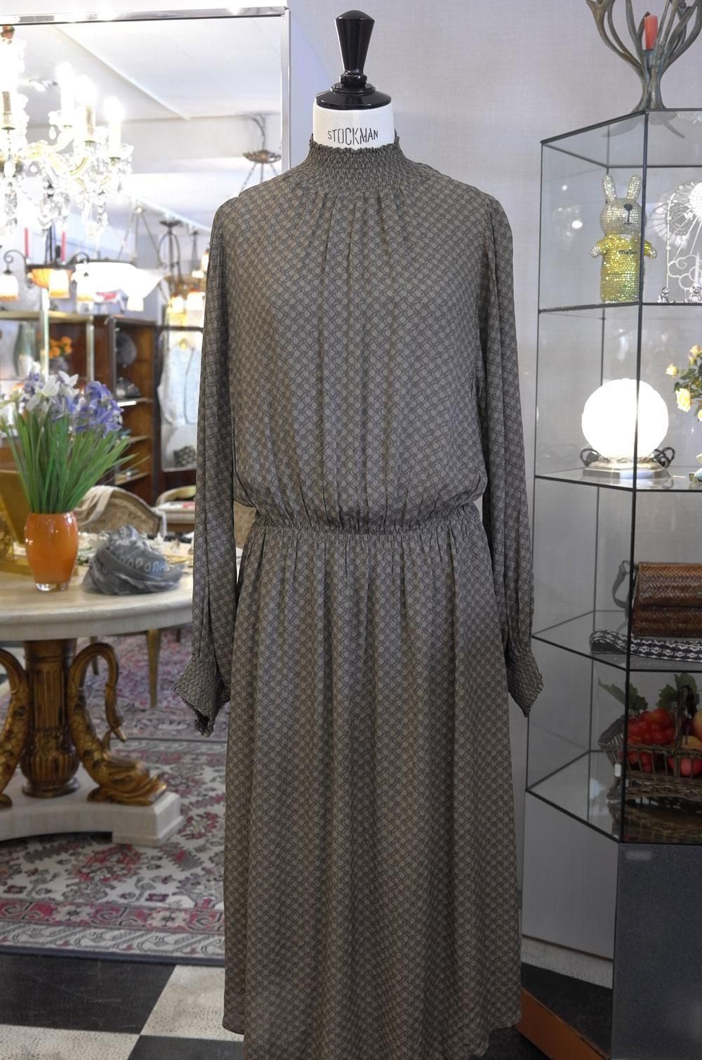 【フランス新品ファッションレディース】長袖ロングワンピース ギャザー襟袖 ベージュグリーン系 パリ