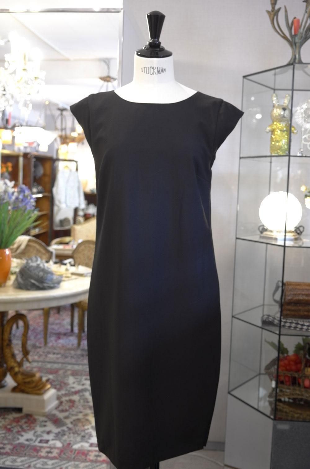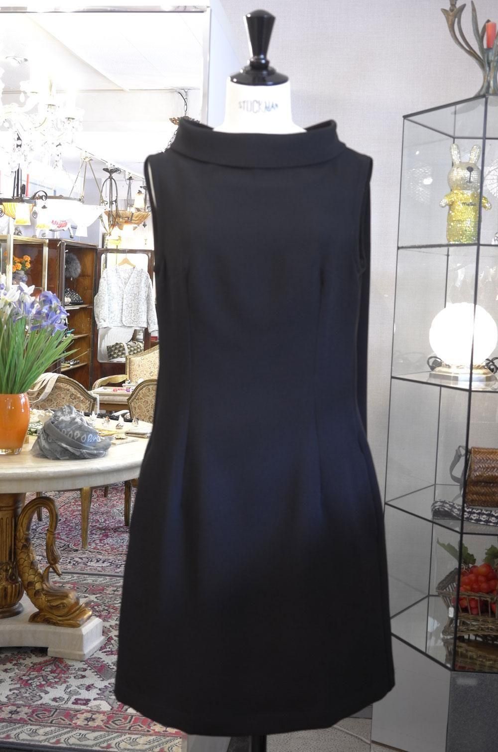 【フランス新品ファッションレディース】ノースリーブワンピース ロールカラー 隠しディティールあり 厚手上質黒 フレンチデザイナー モード パリ