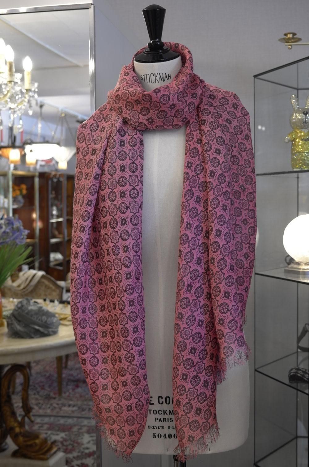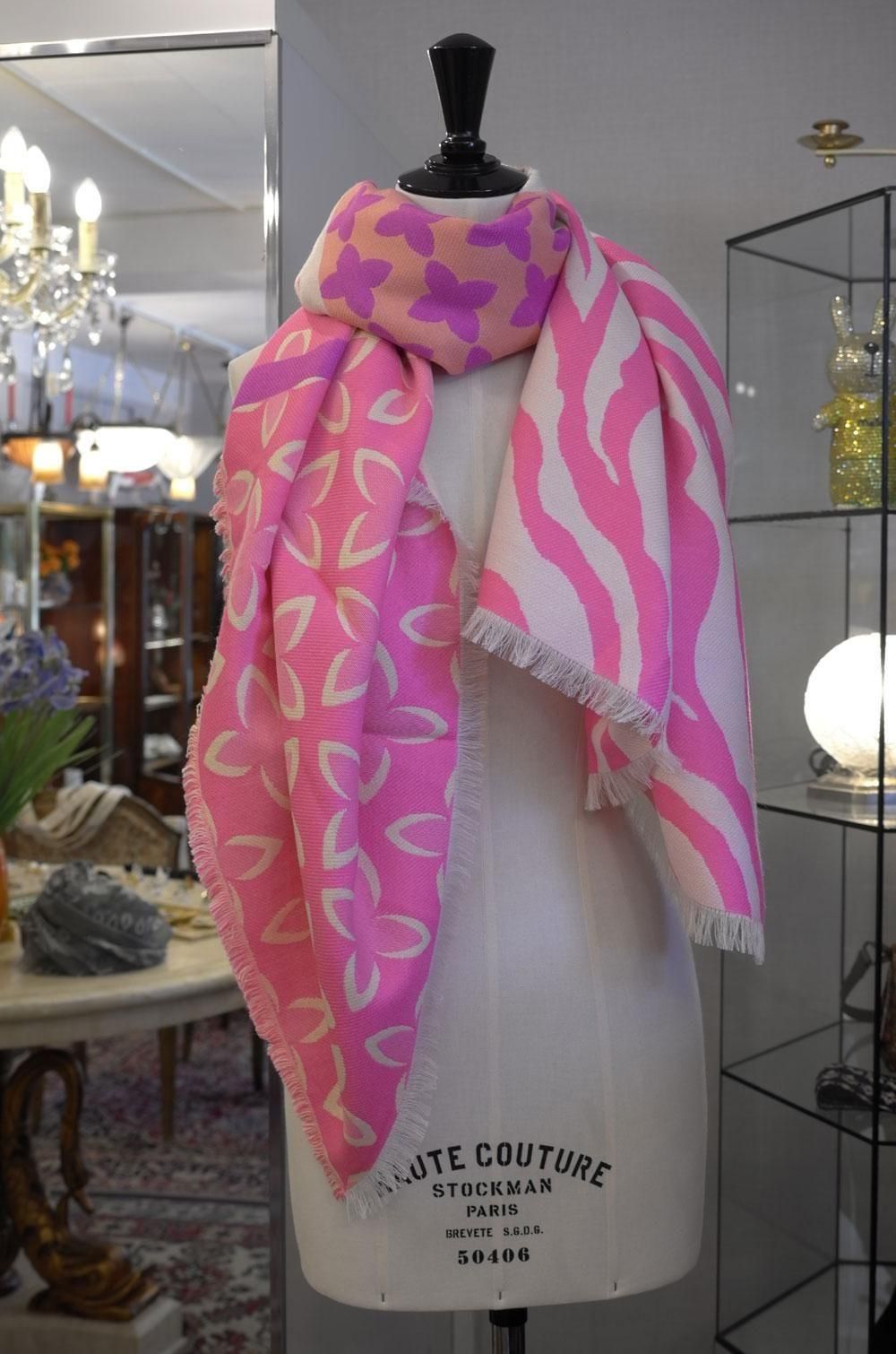 【フランス新品ファッション雑貨レディース】マフラー ストール モノグラム柄 ピンク カシミヤ混 モダン パリ
