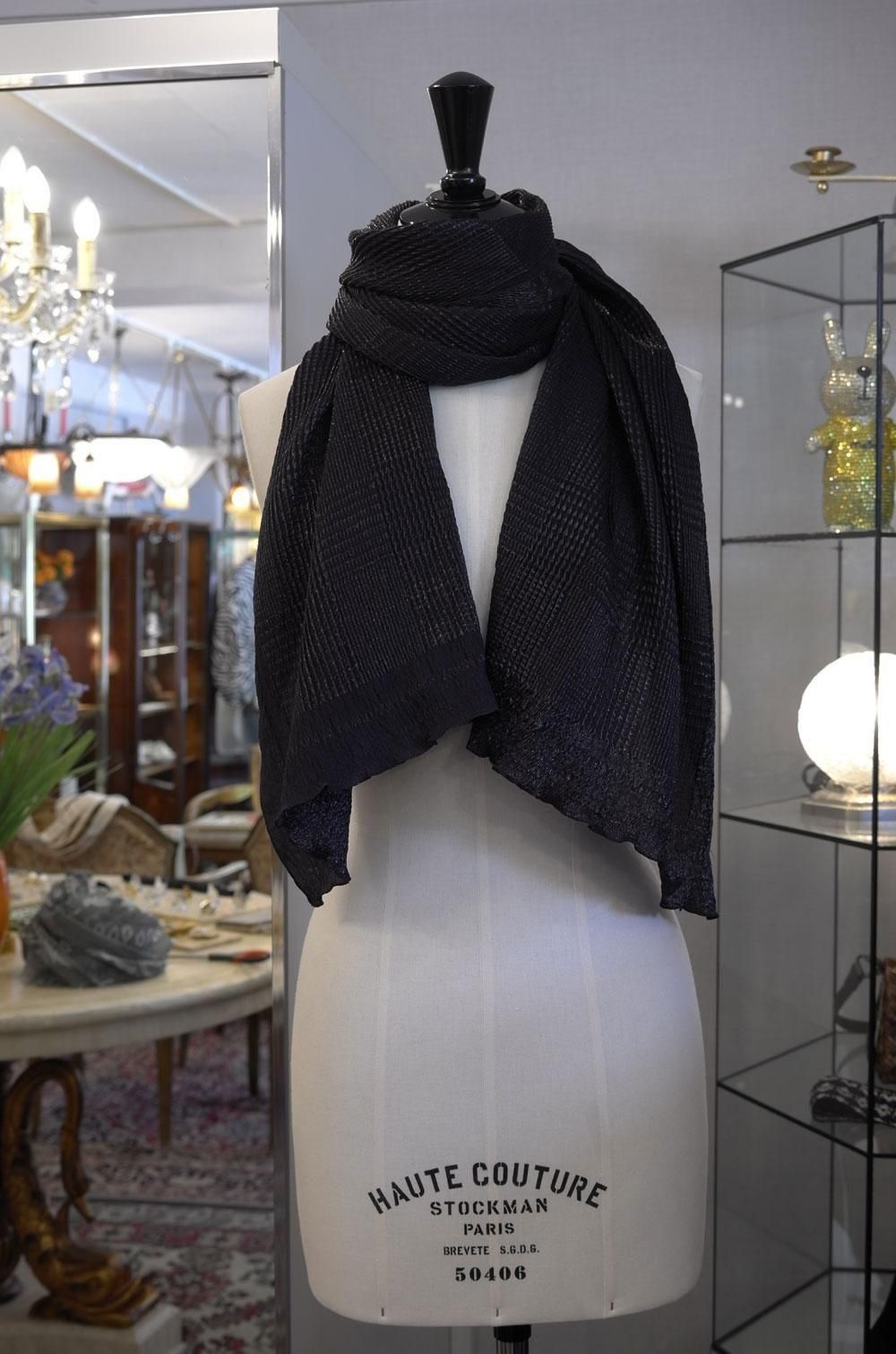 【フランス新品ファッション雑貨レディース】マフラー ストール 立体グレンチェック 薄手 紺ラメ モダン パリ