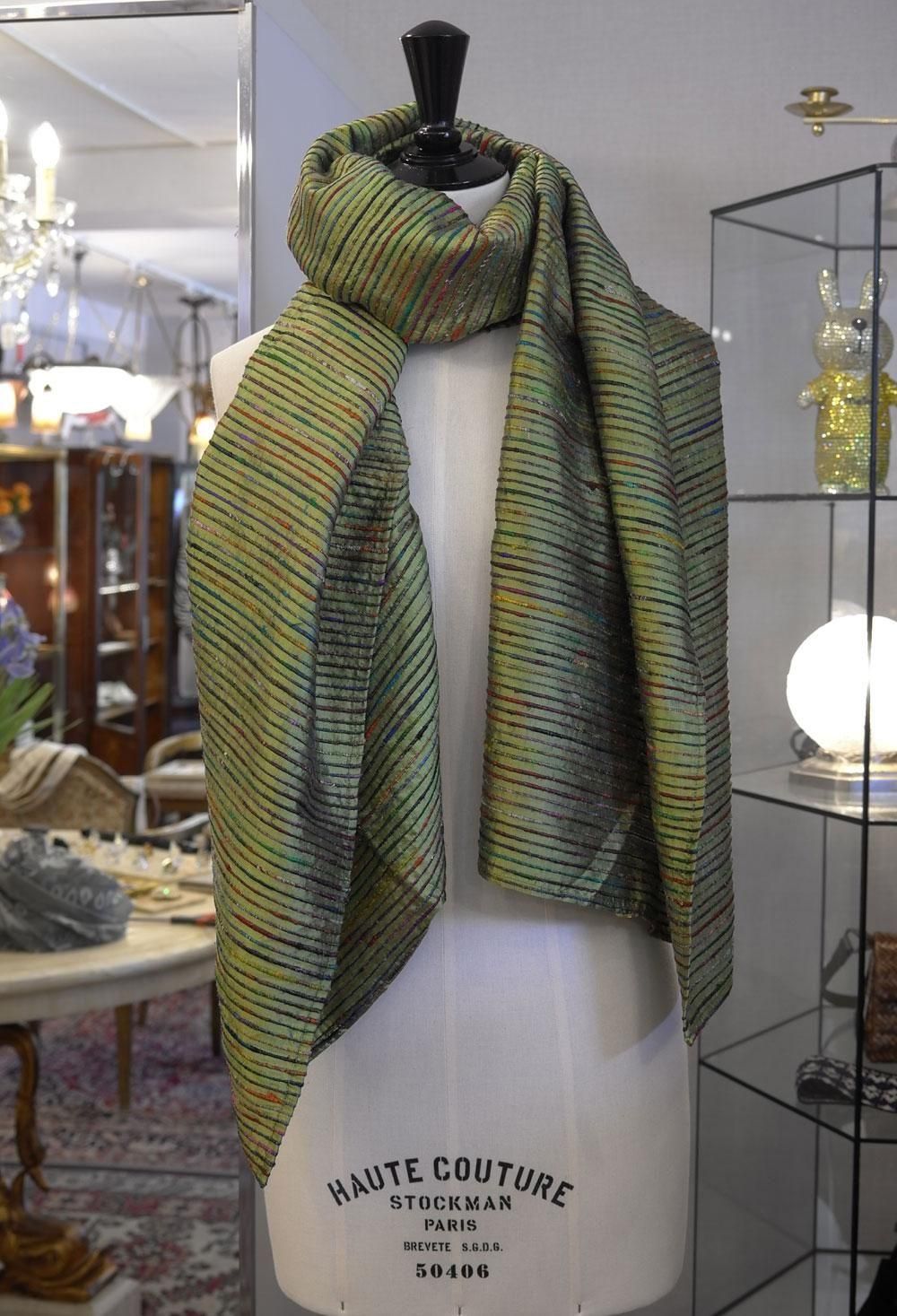 【フランス新品ファッション雑貨レディース】マフラー ストール 縞横ボーダー 玉虫マルチカラー 中厚 モダン パリ