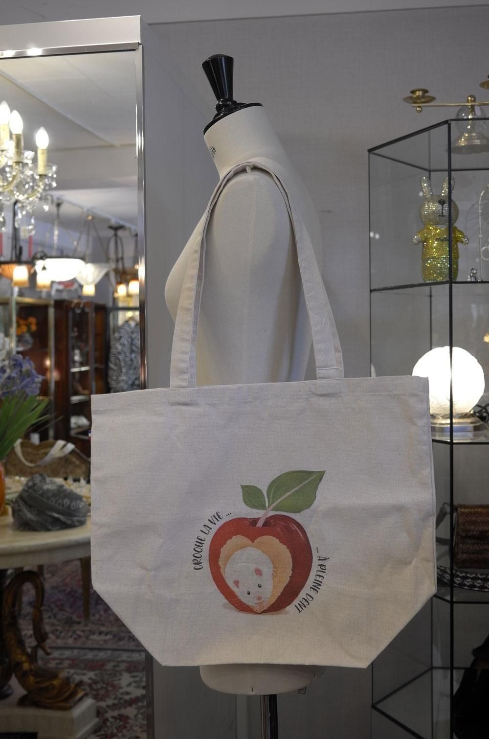 【フランス新品ファッション雑貨レディース】トートショルダーバック リンゴねずみ キャンパス地 モダン パリ