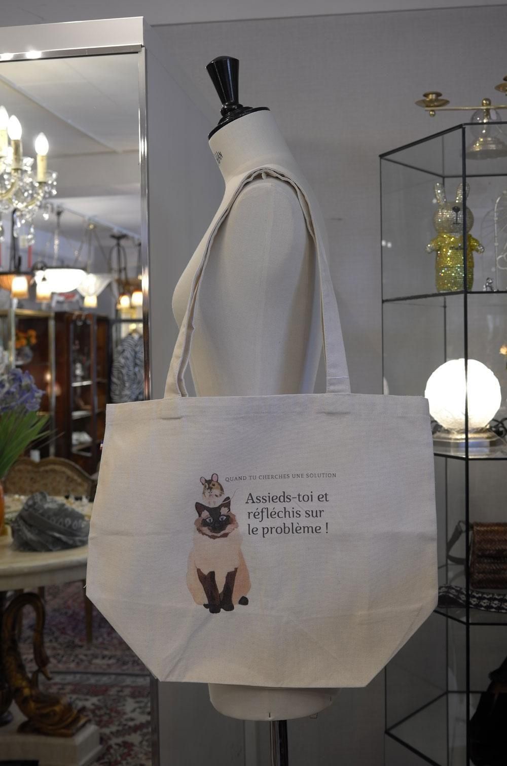 【フランス新品ファッション雑貨レディース】トートショルダーバック 猫ねずみ キャンパス地 モダン パリ