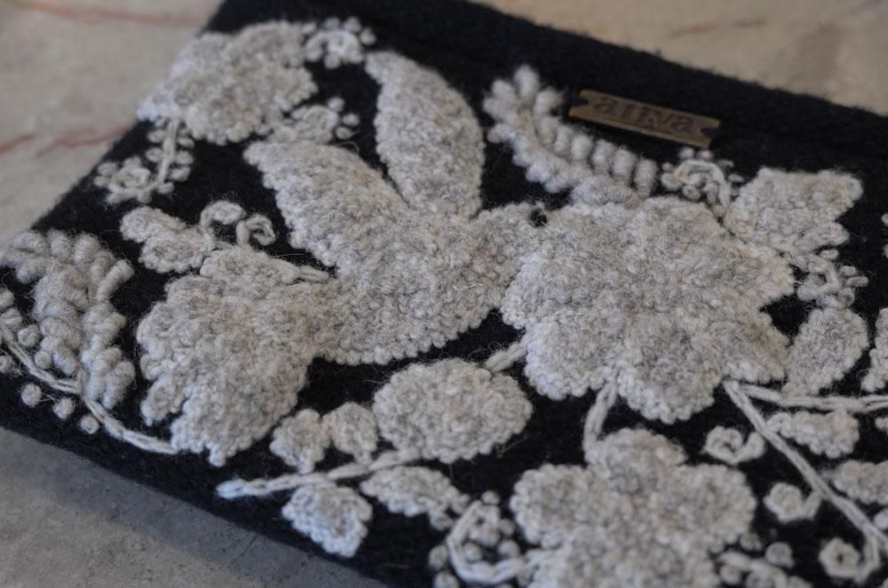 【フランス新品ファッション雑貨レディース】ポーチ小物入れ 手刺繍 ファスナー 花フラワー鳥 ペルーデザイナー モダン パリ