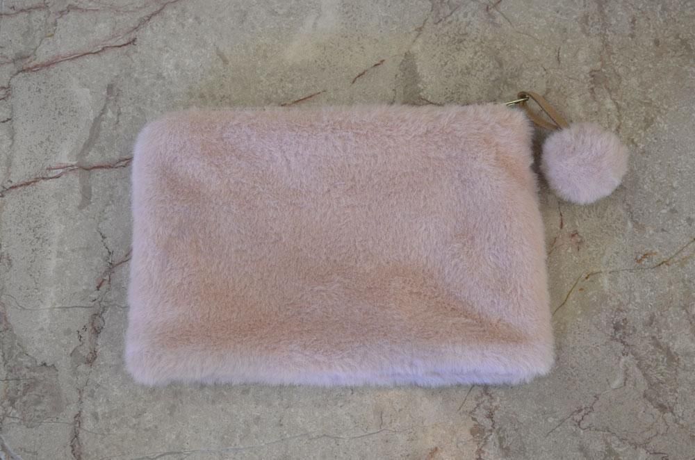【フランス新品ファッション雑貨レディース】ポーチ小物入れ もふもふ ファスナー 4色 モダン パリ