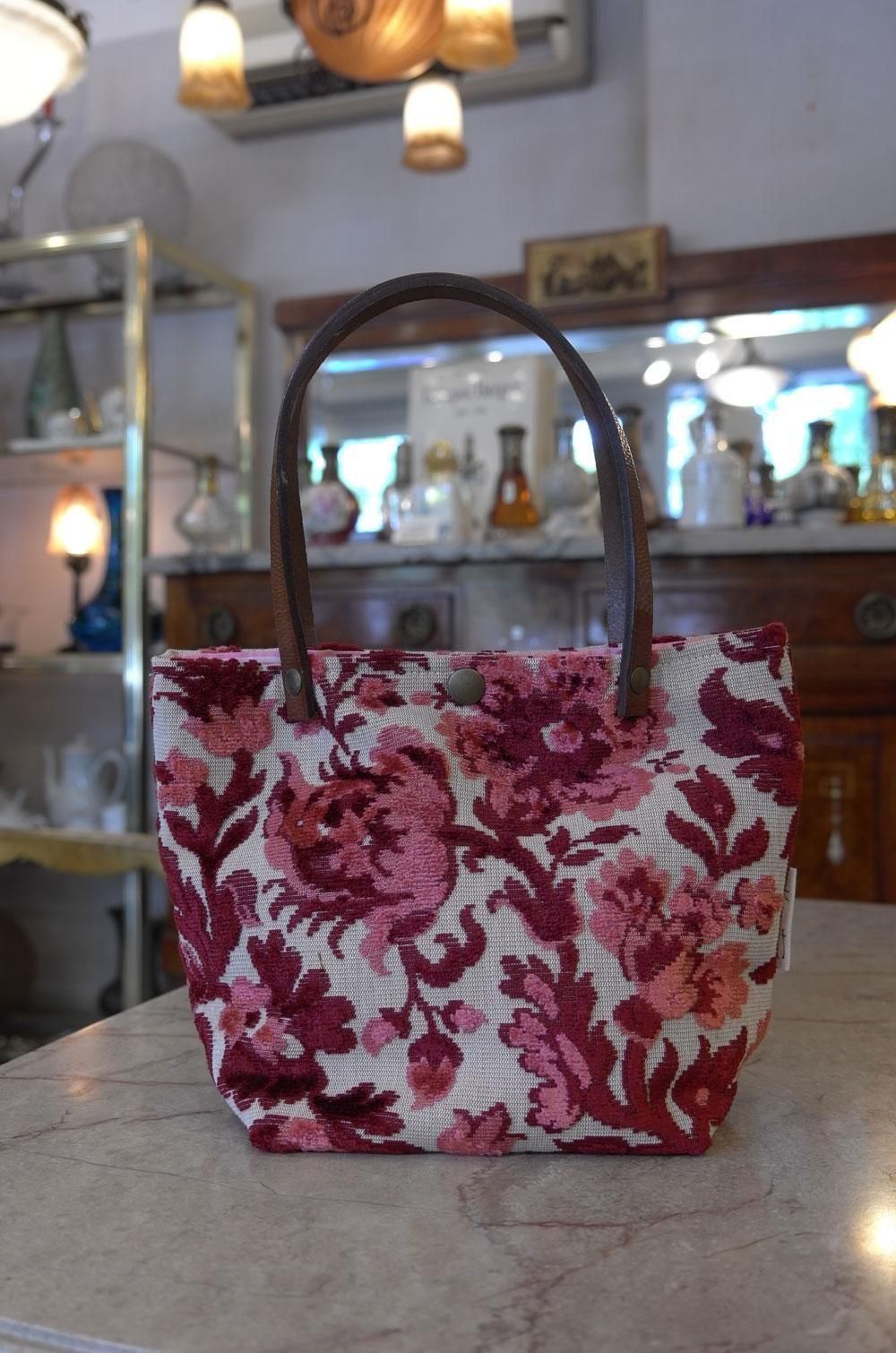 【フランス新品ファッション雑貨レディース】ミニトートバック ゴブラン織り 花フラワー 持ち手革 世界で一つ フレンチデザイナー モダン パリ
