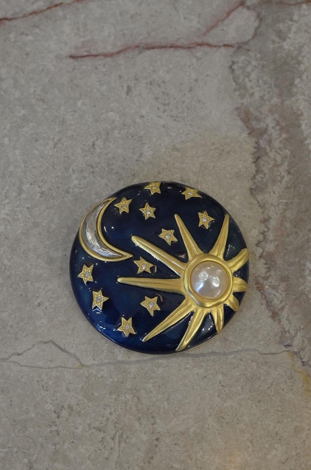 【フランスヴィンテージアクセサリーレディース】KARL LAGERFELD ブローチピンバッジ 太陽月星 sun moon stars カールラガーフェルド モードハイファッション 一点もの パリ