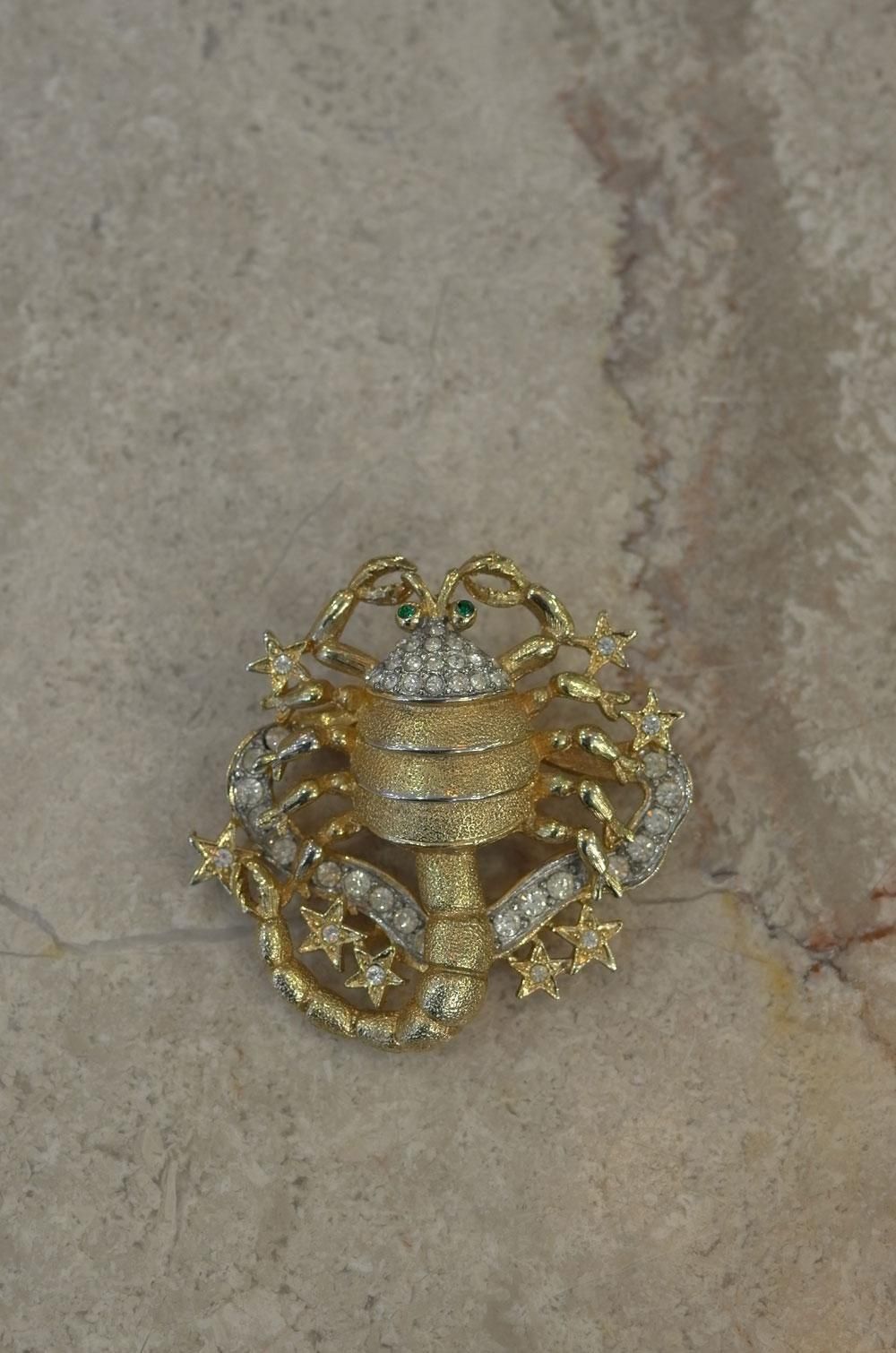 【フランスヴィンテージアクセサリーレディース】ブローチピンバッジ 蠍サソリ スター星 星座 金ゴールド 一点もの ファッション パリ