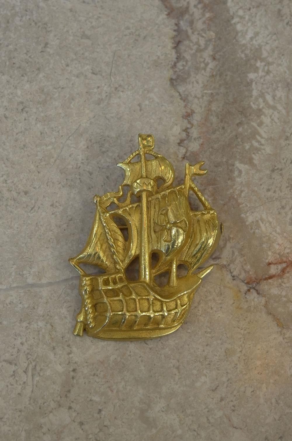 【フランスヴィンテージアクセサリーレディース】ブローチピンバッジ 帆船 海賊ガレオン船 金ゴールド 一点もの ファッション パリ