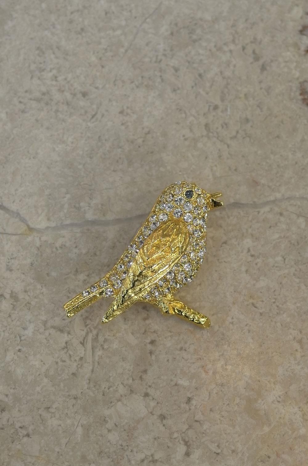【フランスヴィンテージアクセサリーレディース】ブローチピンバッジ 小鳥 ラインストーン 金ゴールド 一点もの ファッション パリ