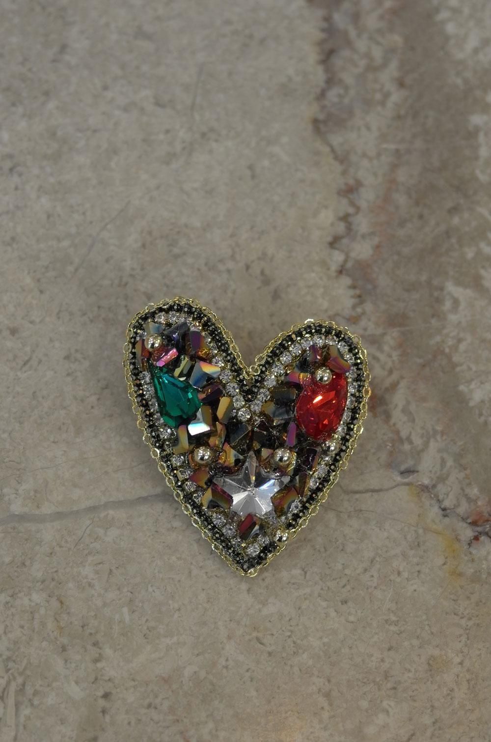 【フランス新品アクセサリーレディース】ブローチピンバッジ ハート キラキラビーズ モダン ファッション パリ
