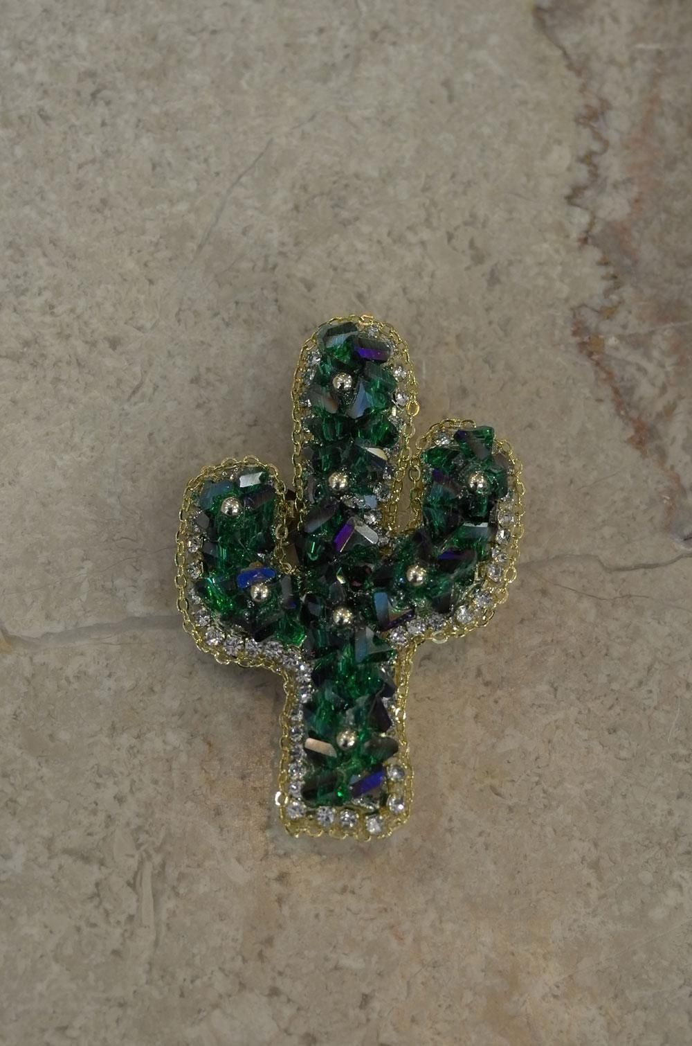 【フランス新品アクセサリーレディース】ブローチピンバッジ サボテン キラキラビーズ 緑 モダン ファッション パリ