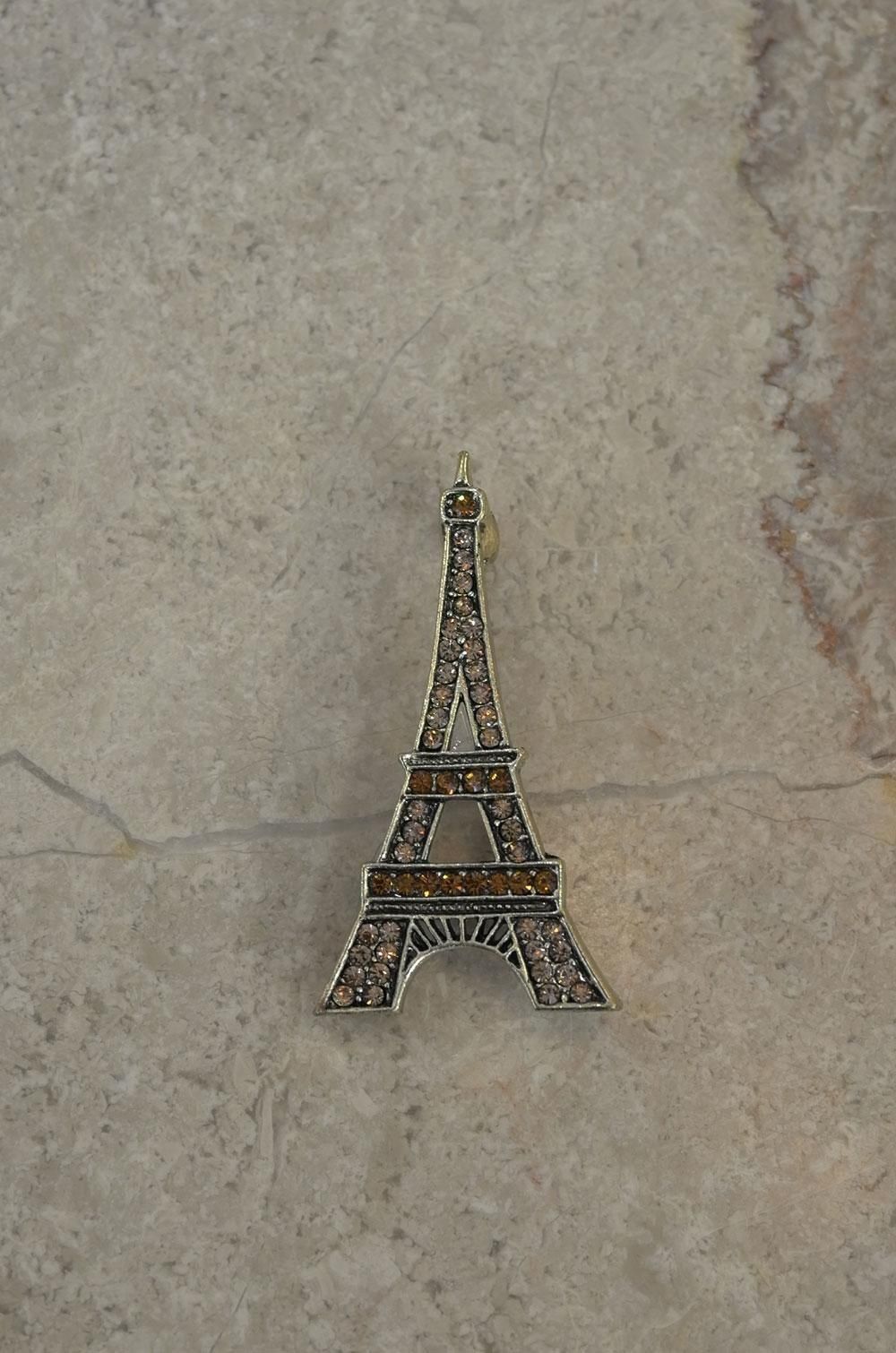 【フランス新品アクセサリーレディース】ブローチピンバッジ エッフェル塔 ラインストーン 金キラキラ モダン ファッション パリ