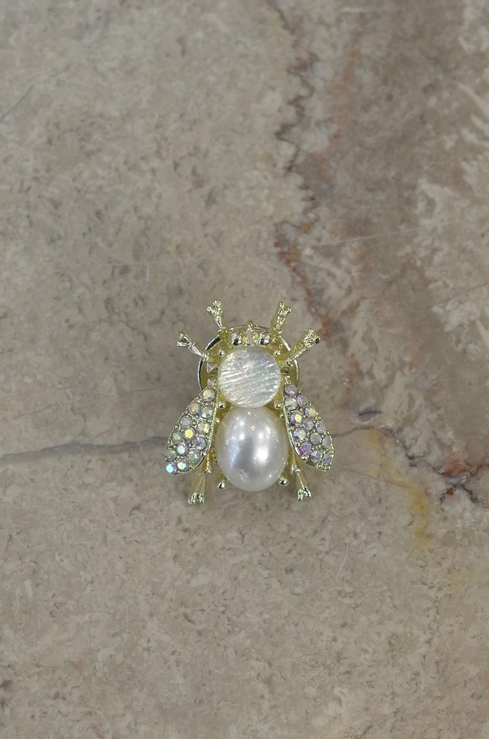 【フランス新品アクセサリーレディース】ブローチピンバッジ 蜜蜂ハチ ラインストーン 金キラキラ モダン ファッション フレンチデザイナー パリ