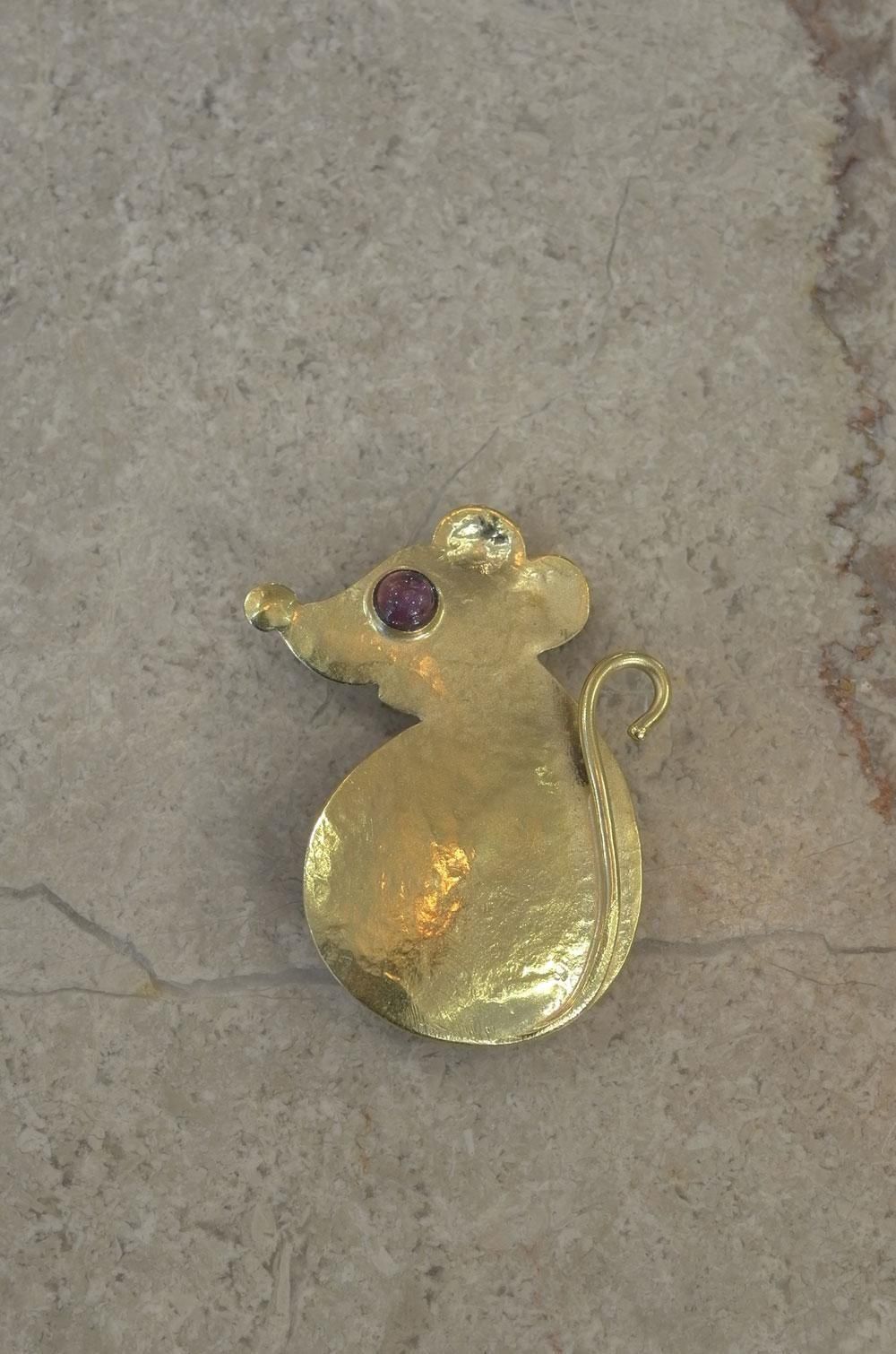 【フランス新品アクセサリーレディース】ブローチピンバッジ ねずみ アメジスト 純金メッキ モダン ファッション フレンチデザイナー パリ