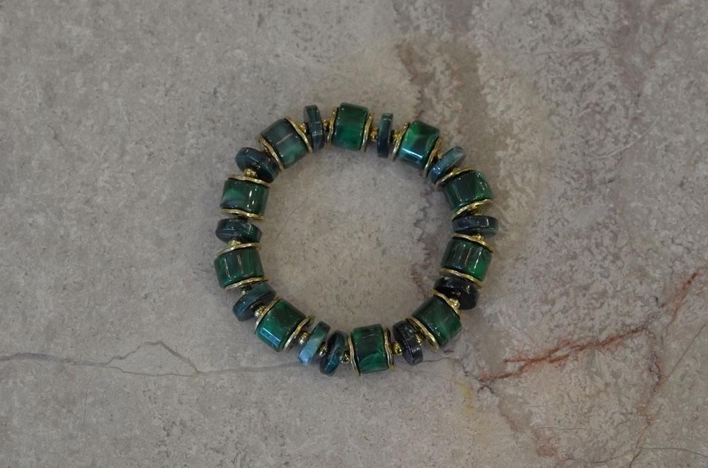 【フランス新品アクセサリーレディース】ブレスレット バングル レジン 緑金 モダンファッション パリ