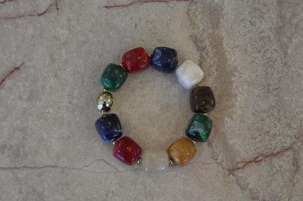 【フランス新品アクセサリーレディース】ブレスレット バングル レジン マルチカラー 赤青緑金白 モダンファッション パリ