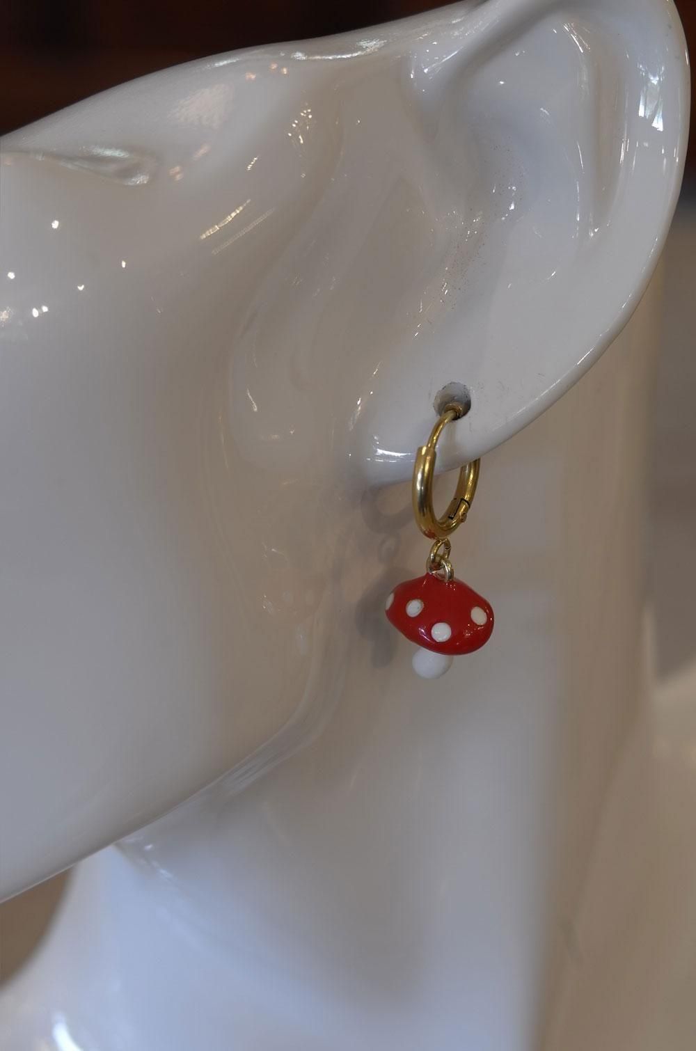 【フランス新品アクセサリーレディース】ピアス 毒キノコ 赤白エナメル スウィング モダンファッション パリ
