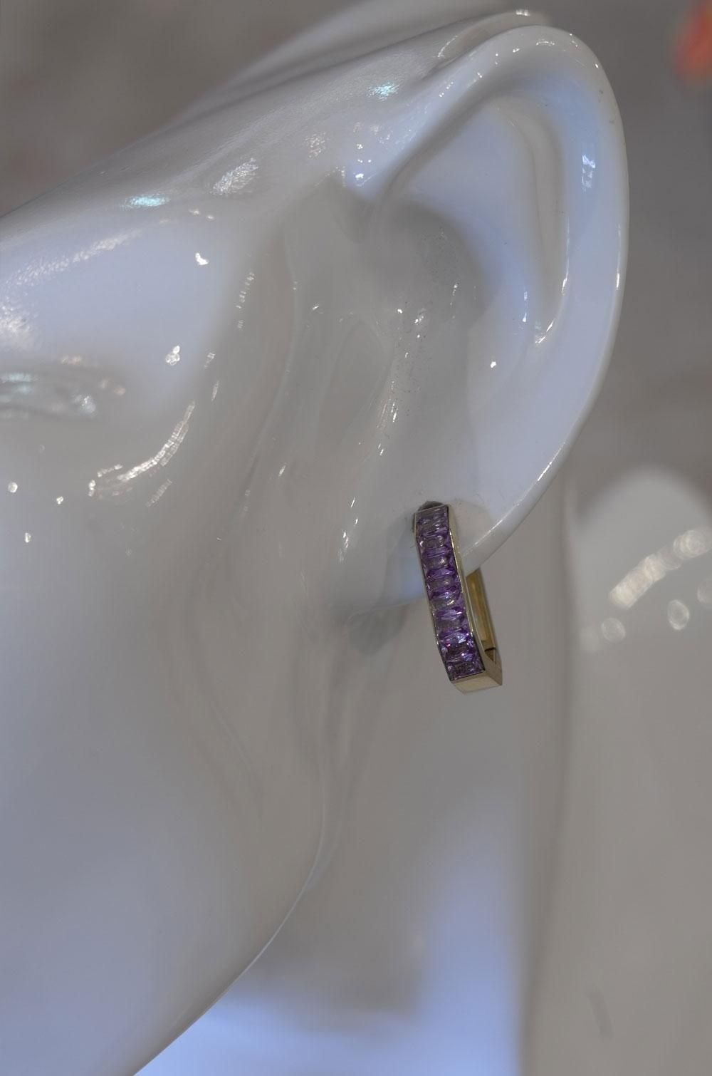 【フランス新品アクセサリーレディース】ピアス アールデコ ラインストーン紫 金ゴールド スタッド モダンファッション パリ