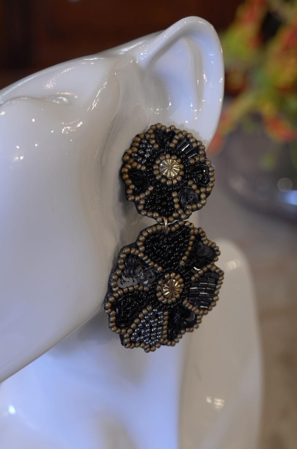 【フランス新品アクセサリーレディース】ピアス 大花 ビーズ 紺金ゴールド スタッド モダンファッション パリ