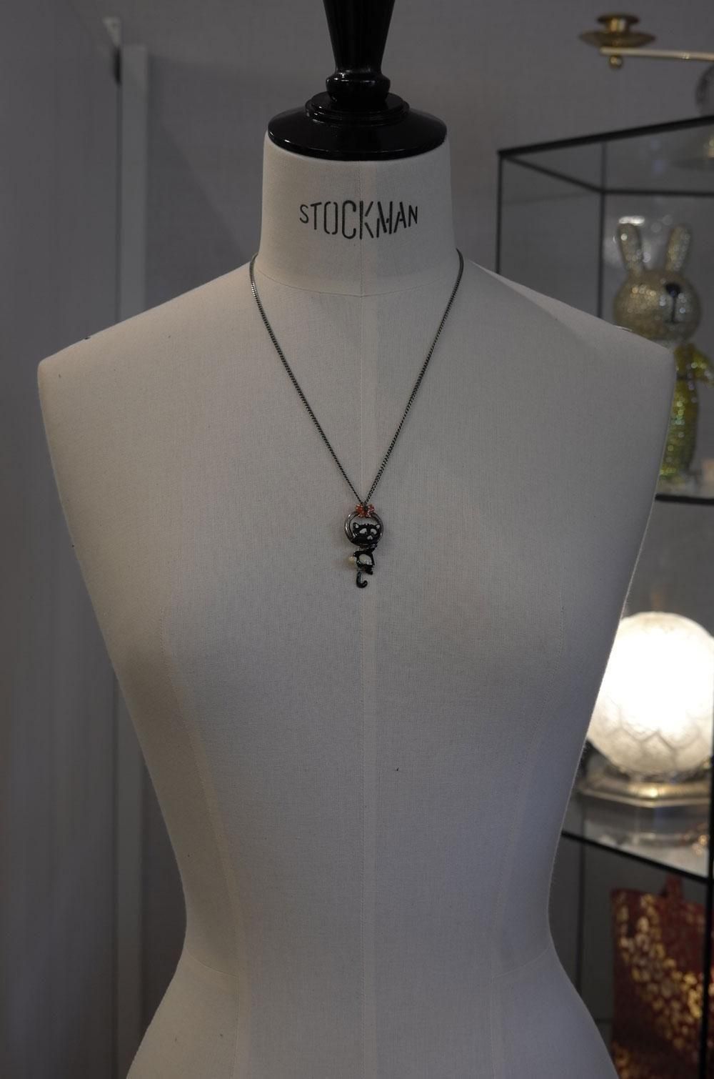 【フランス新品アクセサリーレディース】ネックレス ペンダントトップ 黒猫 エナメル 作家もの ファッション パリ