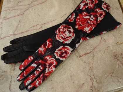 【フランス新品ファッション雑貨レディース】LANVIN ロング手袋 オートクチュール 薔薇刺繍 シルク羊革ラムスキン ランバン フランス製 ハイブランド パリ