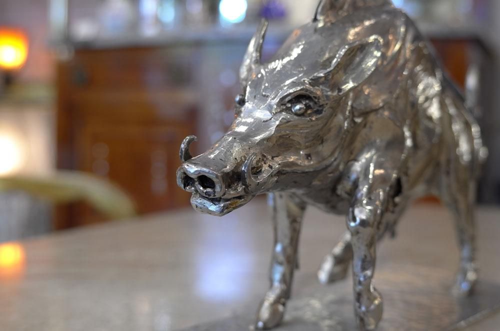 【フランスヴィンテージ置物】金属彫刻家François Lavrat作 オブジェ 飾り物 イノシシ 89年 鉄アイアン動物 作家もの モダンアートインテリア パリ