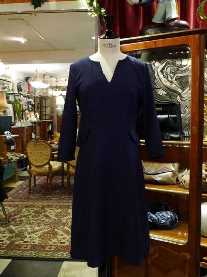 【フランス新品ファッションレディース】八部袖ワンピース スリットネック 茄子紺 フレンチデザイナー モード パリ