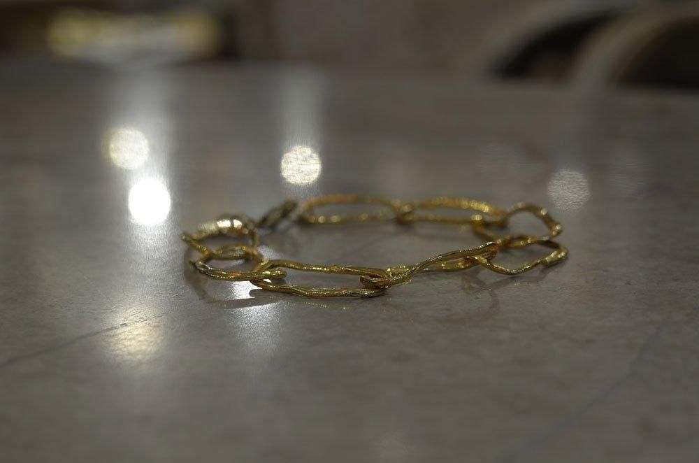 【フランス新品アクセサリーレディース】ブレスレット バングル 金鎖ゴールド 作家もの モダンファッション パリ