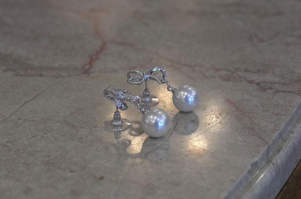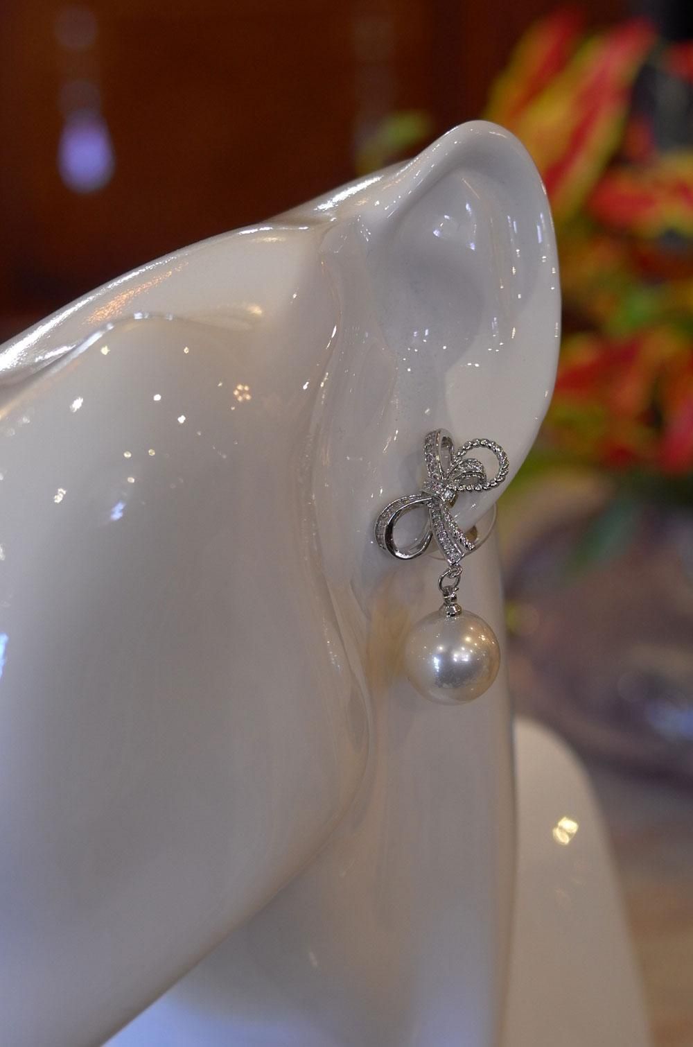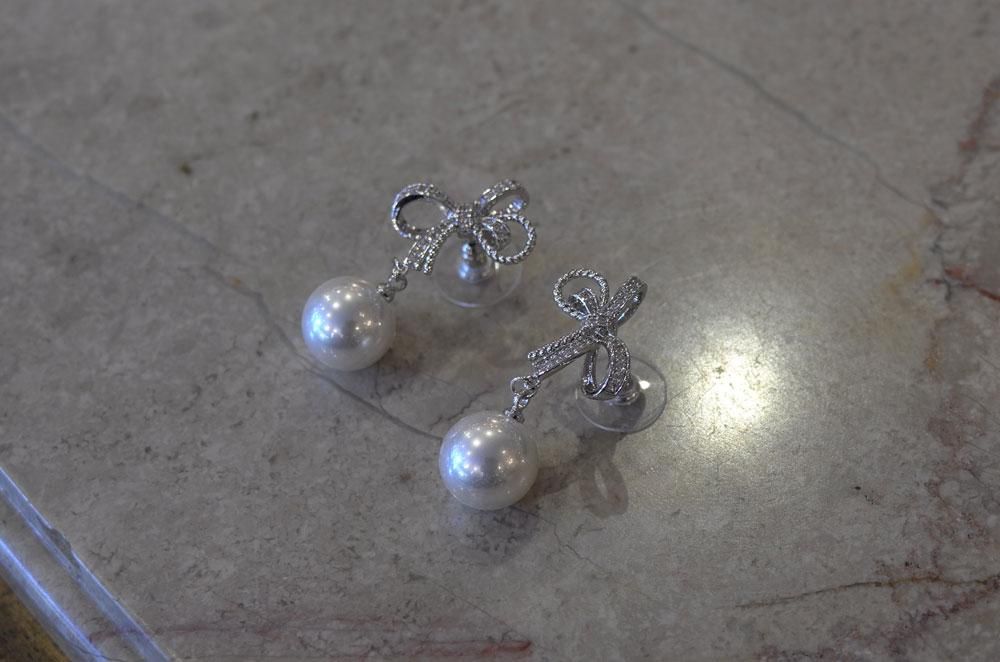 【フランスアクセサリー】新品ピアス リボン 真珠