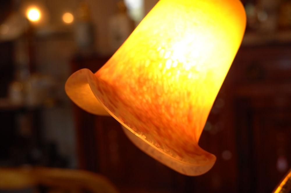 赤の斑点が散りばめられた乳白色のガラスシェードは、大輪の山百合を見ている様です。