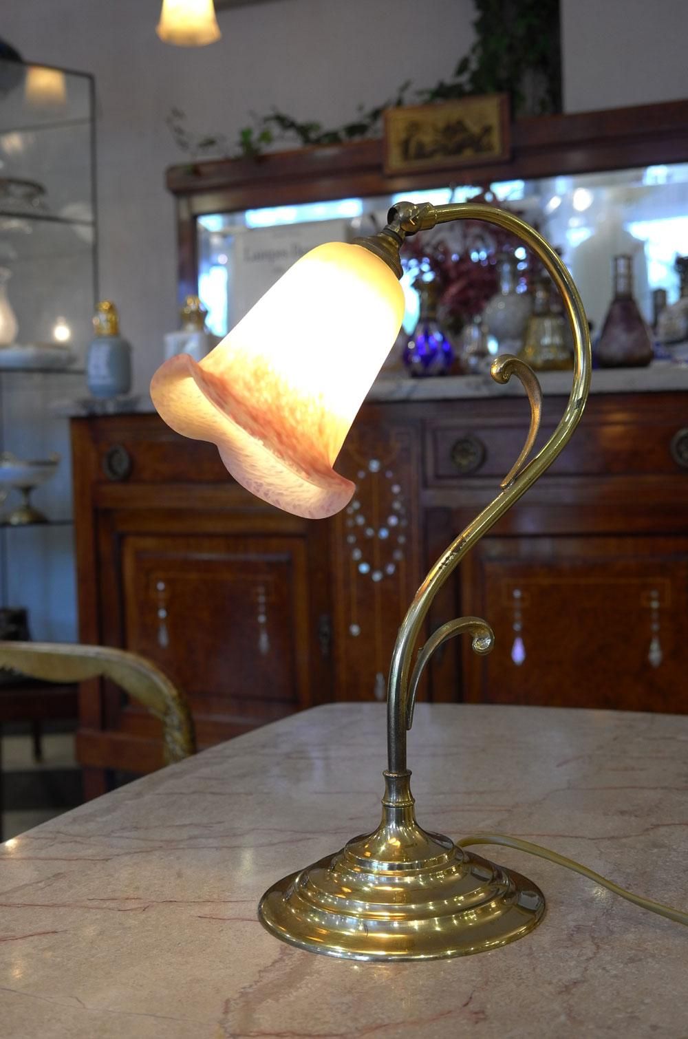 【フランスヴィンテージ照明】スワン型テーブルランプ ローズピンク ガラスシェード ヴィトリフィカシォン 真鍮金物 シンプル インテリア パリ