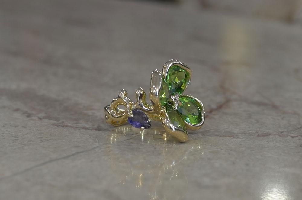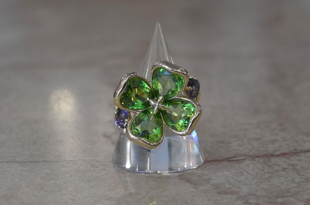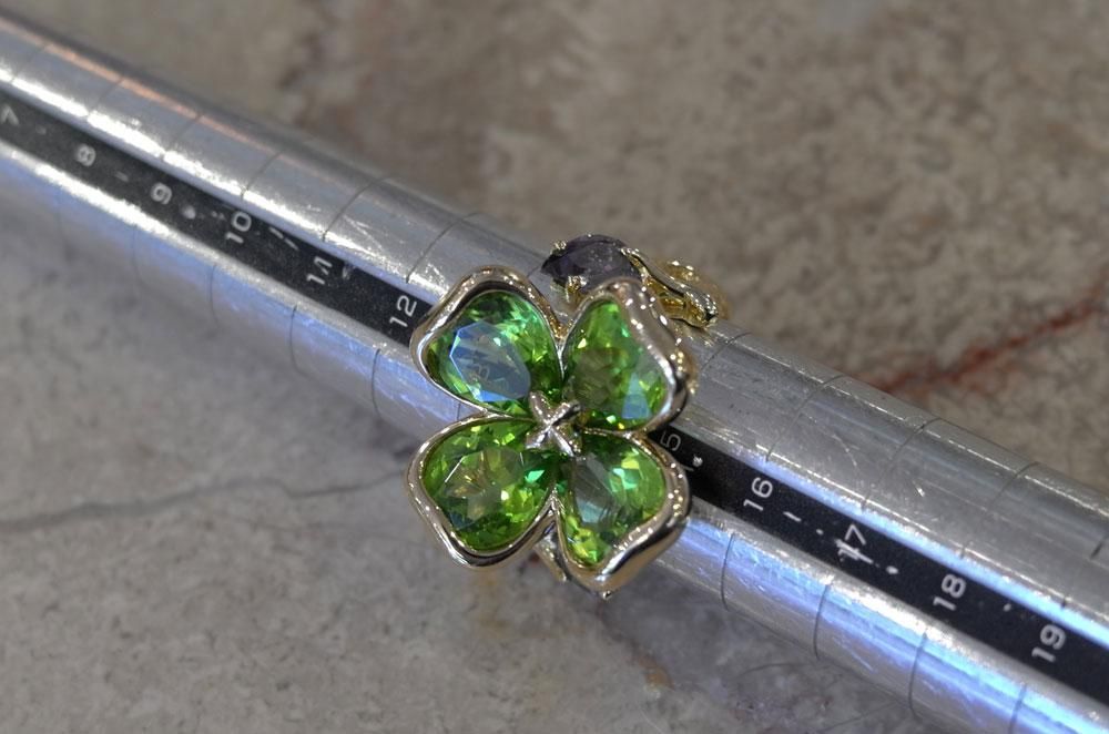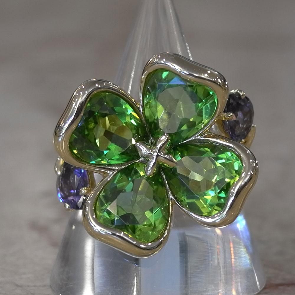 【フランスヴィンテージアクセサリーレディース】CHANEL 指輪 リング ファインジュエリー ペリドット18金 クローバー四葉 ココマーク ハイブランド シャネル パリ