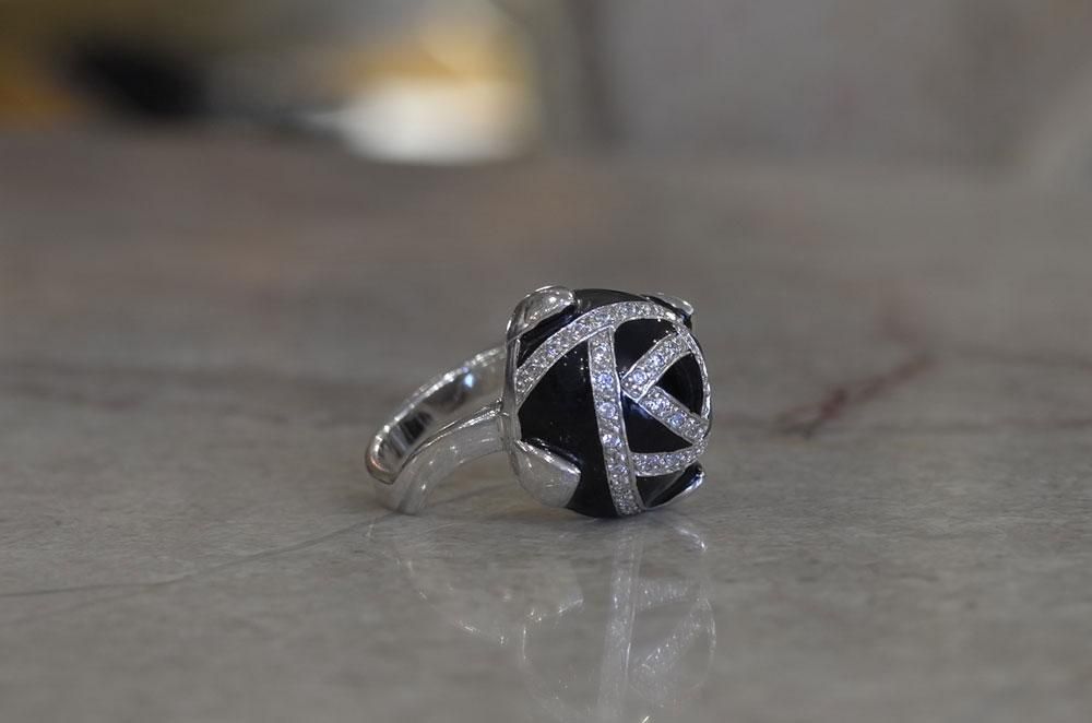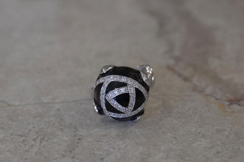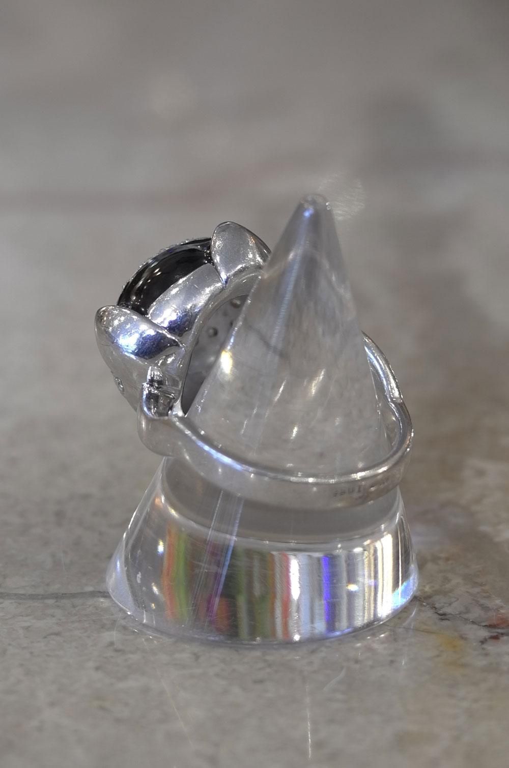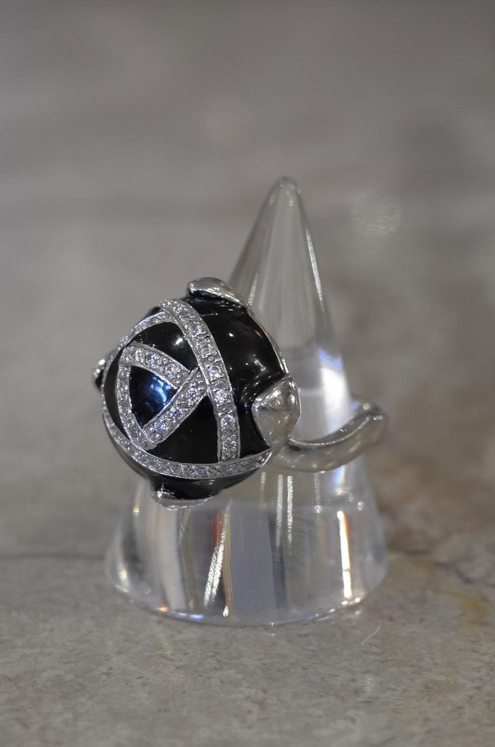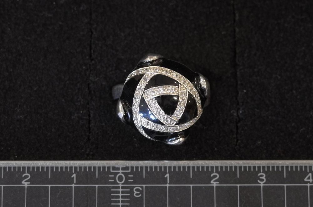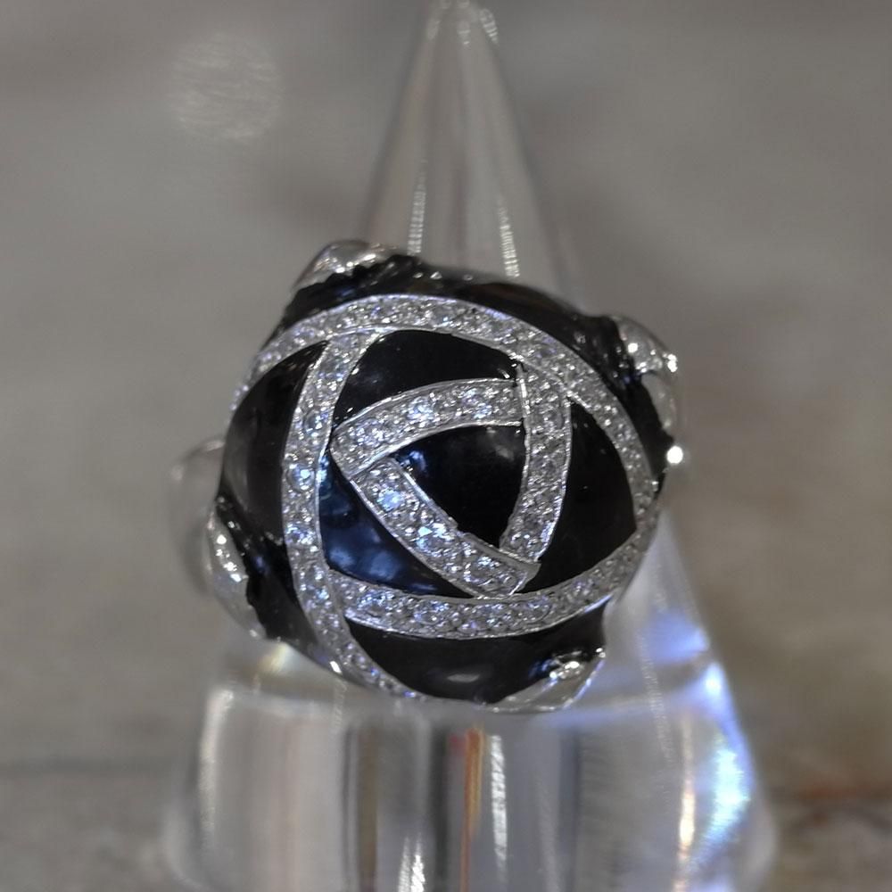 【フランスヴィンテージアクセサリーレディース】指輪 リング 薔薇ローズ 黒花エナメル 銀シルバー925 ジルコニア 一点もの パリ