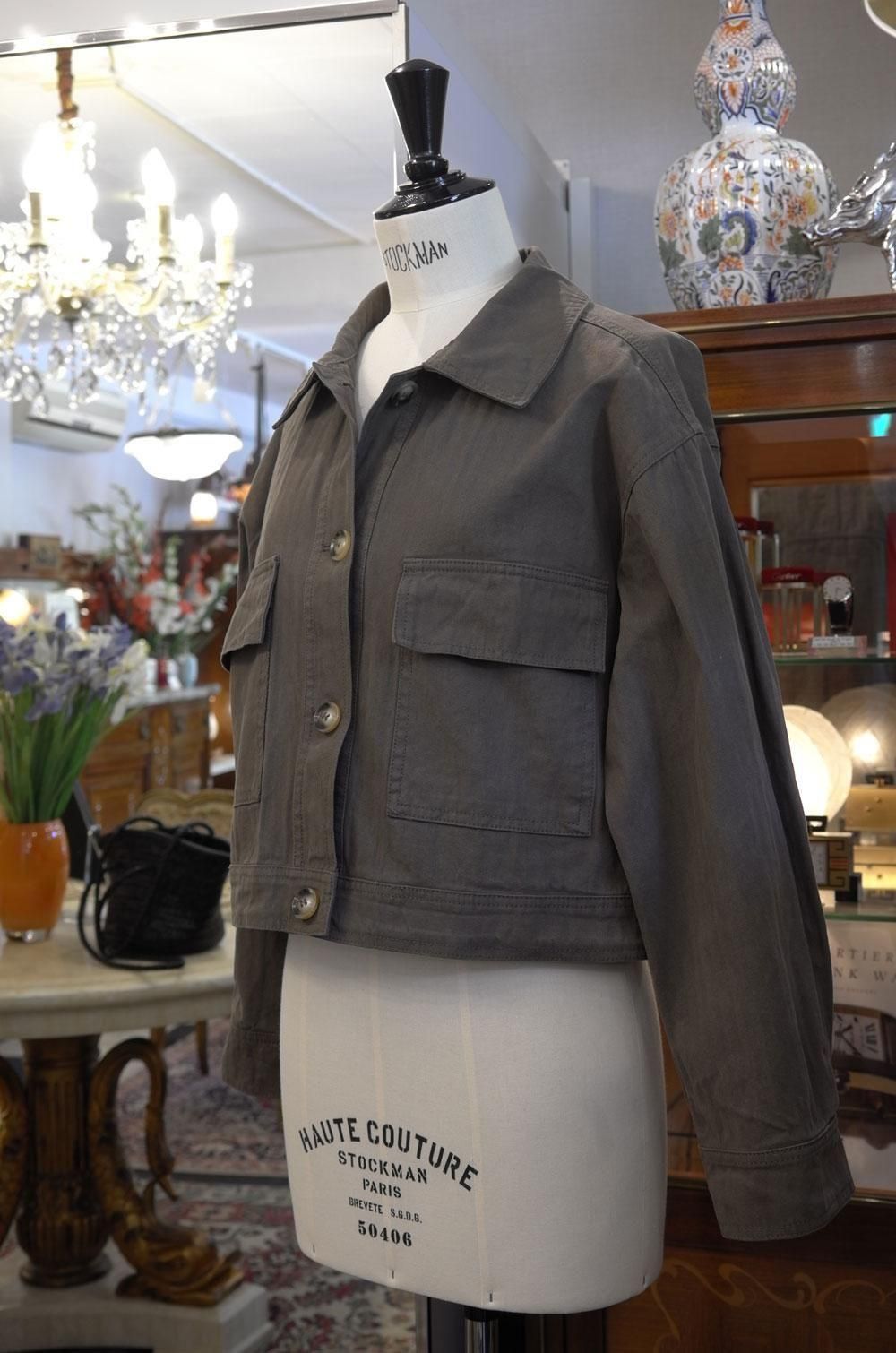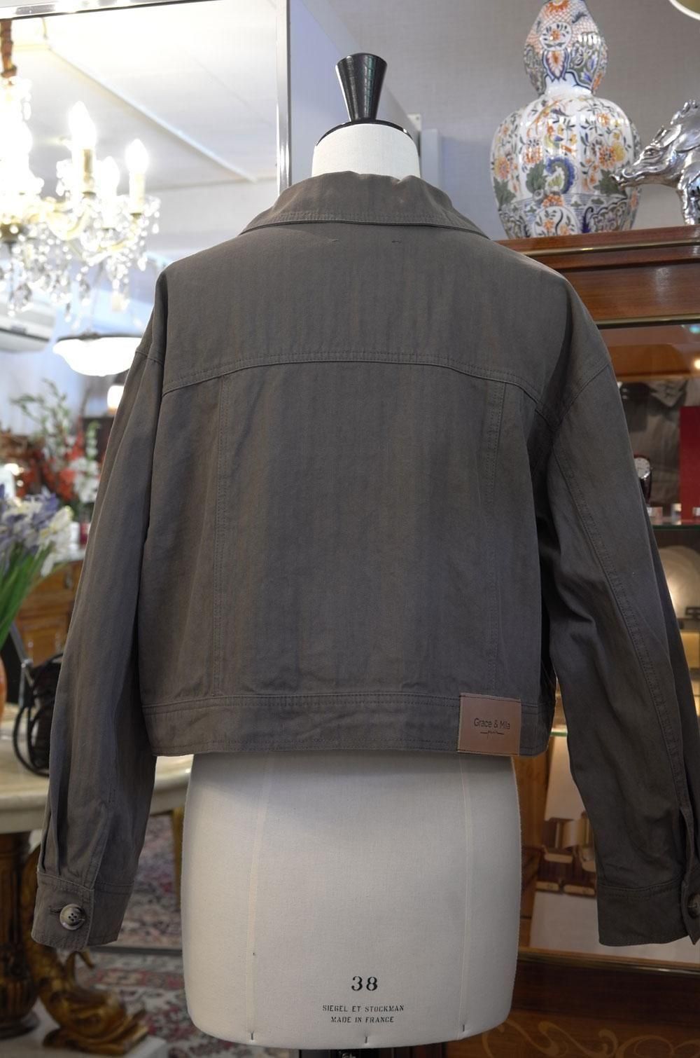 【フランス新品ファッションレディース】長袖デニム風ジャケットブルゾンアウター カーキ緑 フラップポケット モダン パリ
