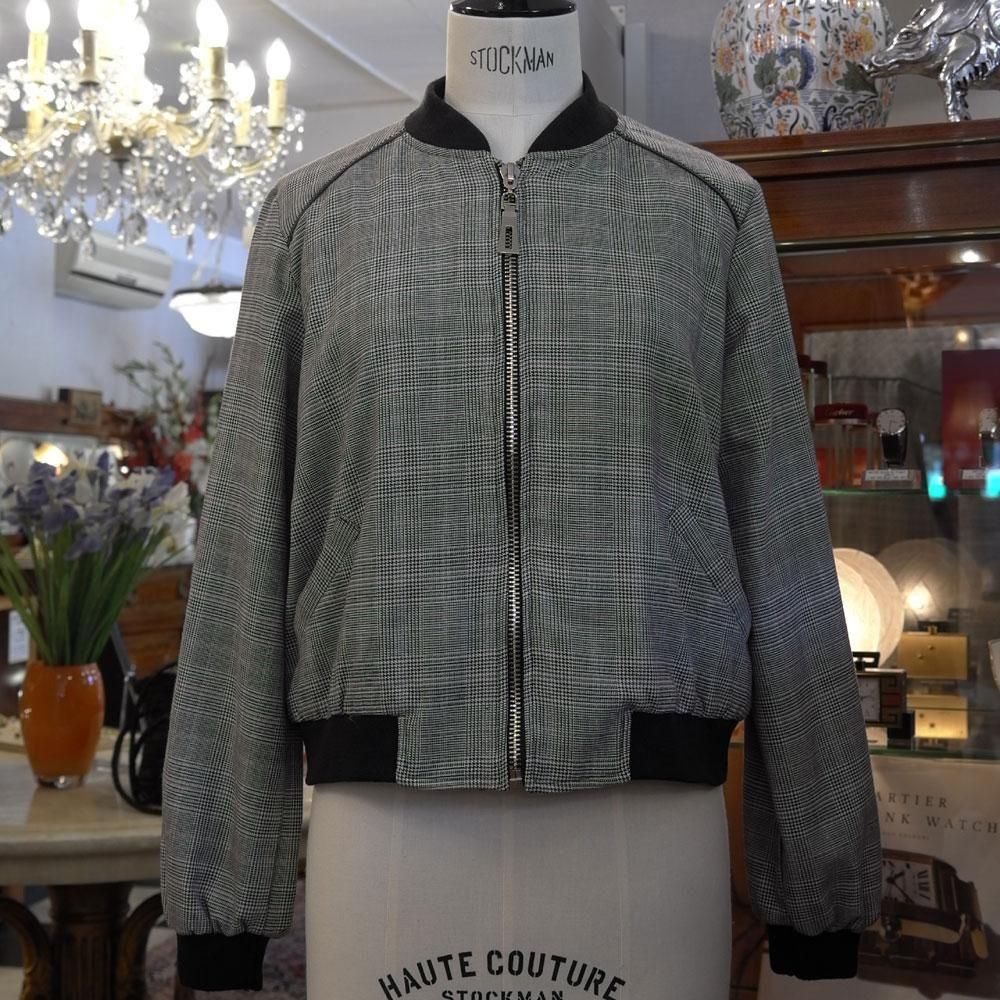 【フランス新品ファッションレディース】長袖ジャケットブルゾンアウター ハウンドトゥース グレー黒 金チェック 前ファスナー フレンチデザイナー モダン パリ