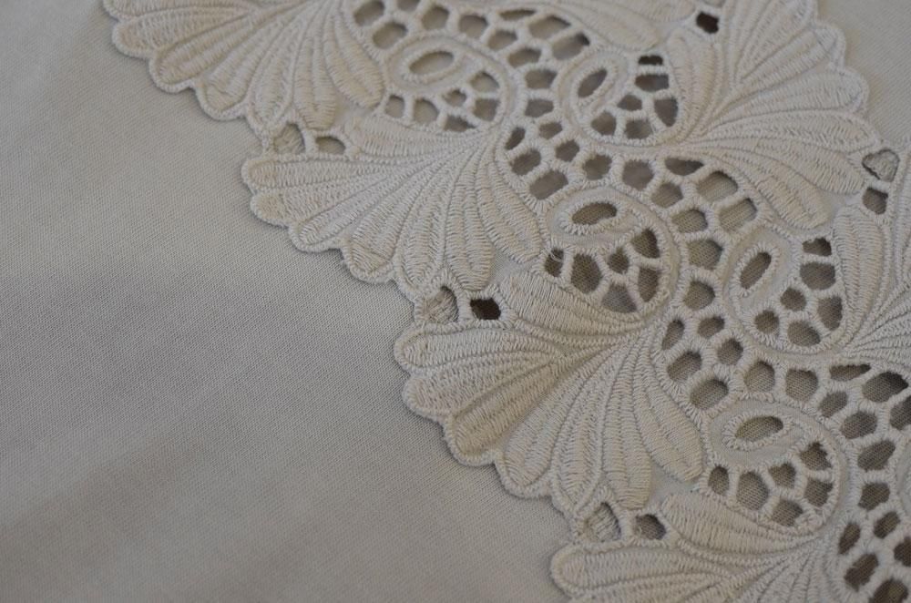 【フランス新品ファッションレディース】半袖Tシャツ 植物レース刺繍 ベージュ モダン パリ