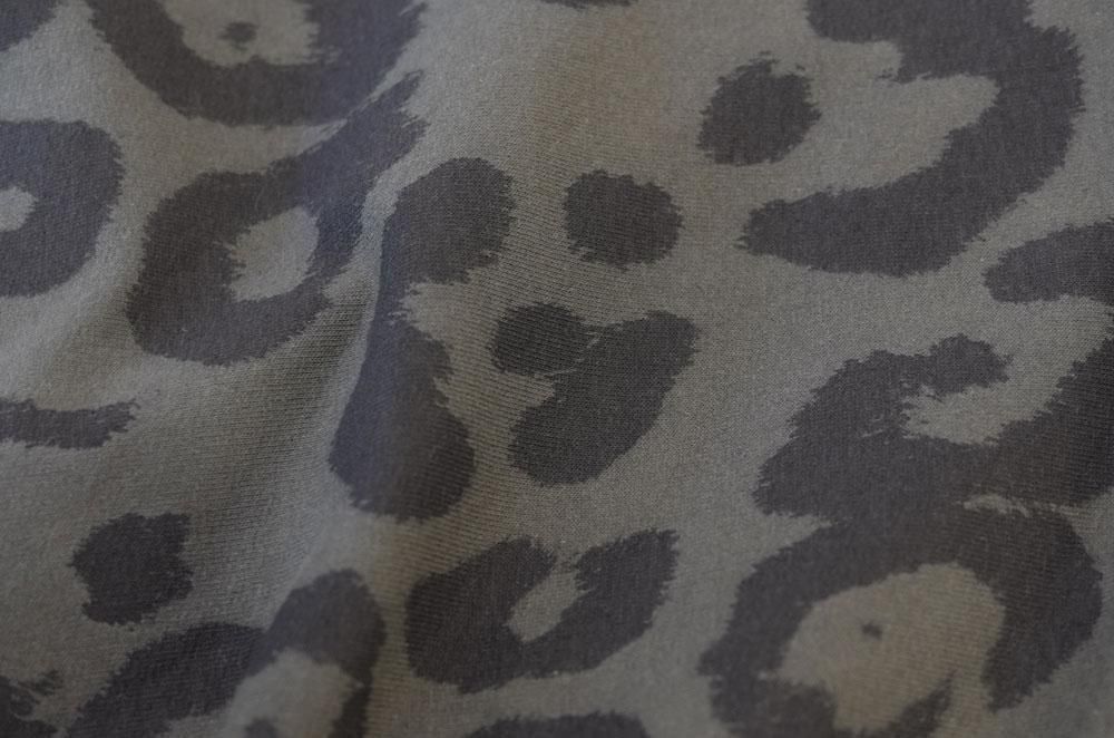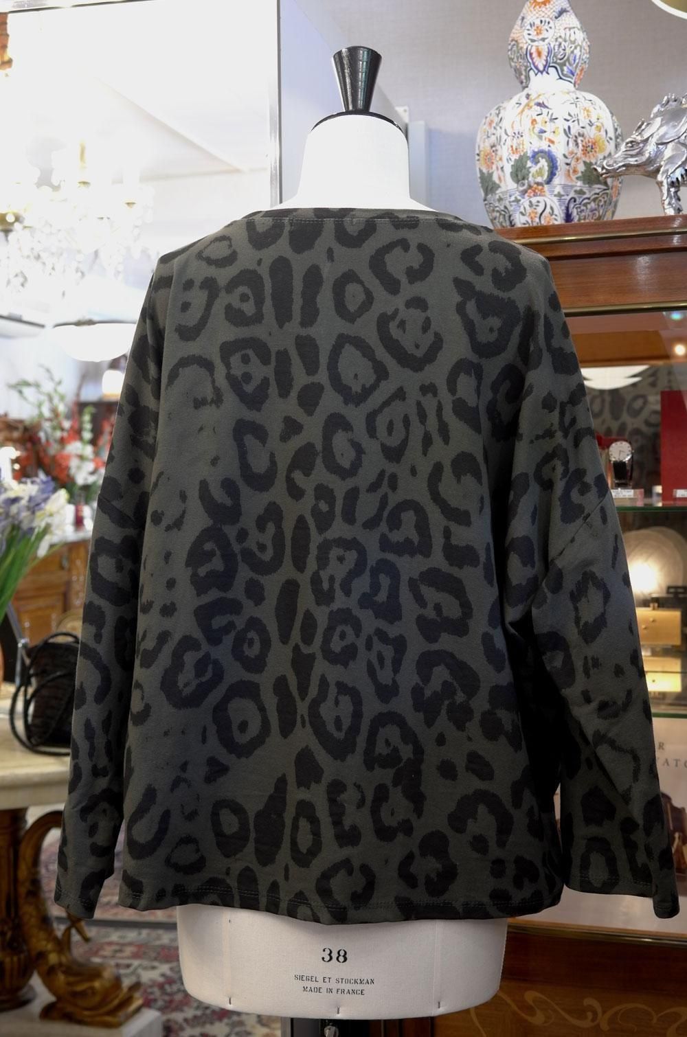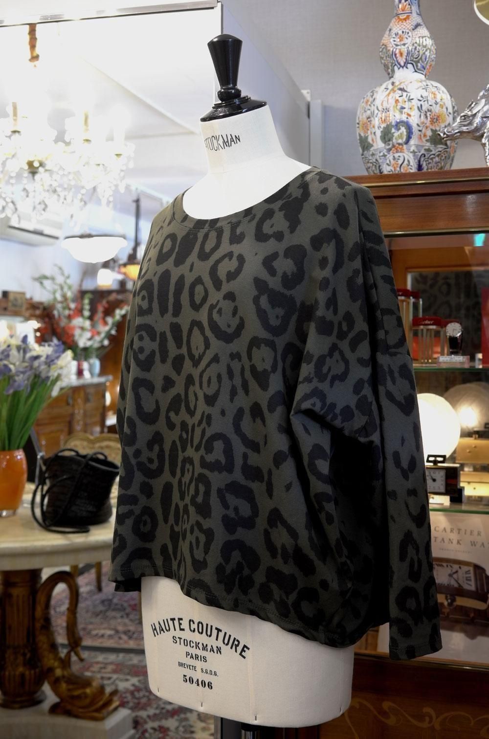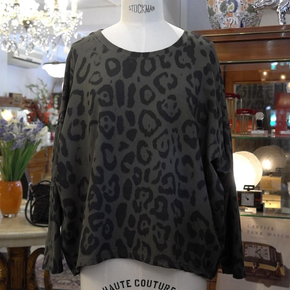 【フランス新品ファッションレディース】長袖トップスカットソー ラウンドネック ヒョウ柄 カーキ緑 モダン パリ