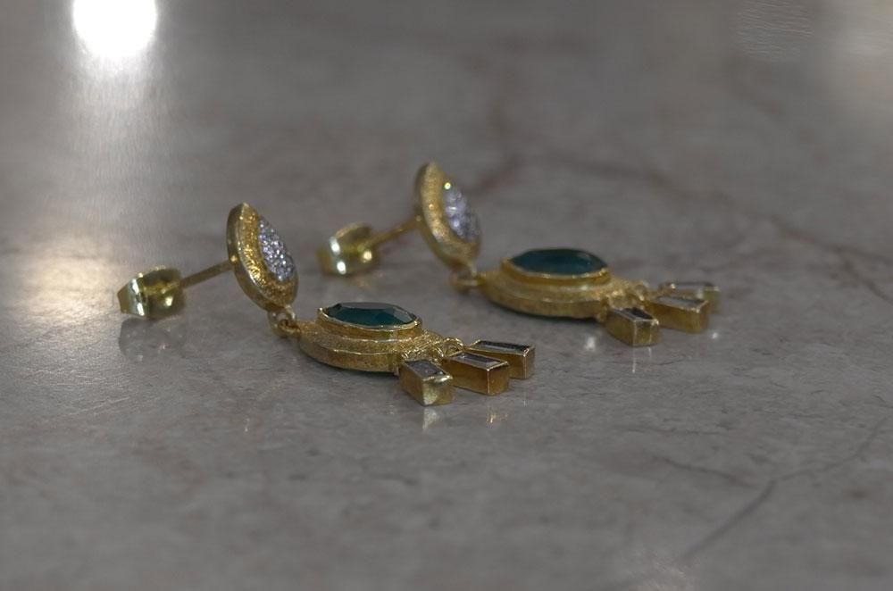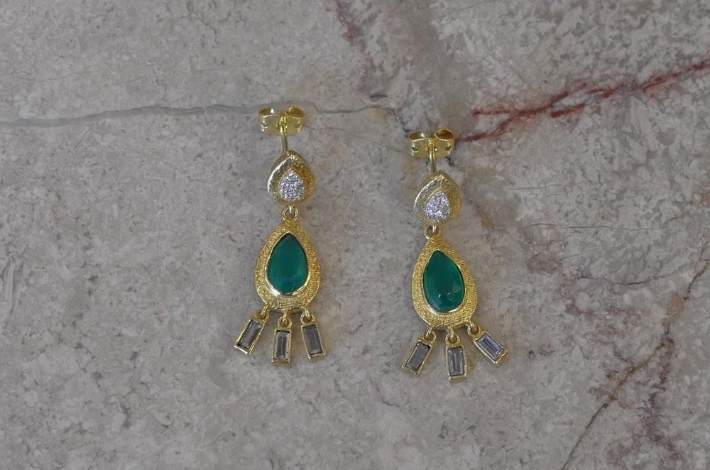 【フランス新品アクセサリーレディース】ピアス エメラルド天然石 銀シルバー 金ヴェルメイユ フランス作家 スウィング モダン ファッション パリ