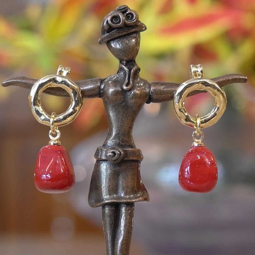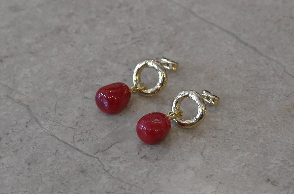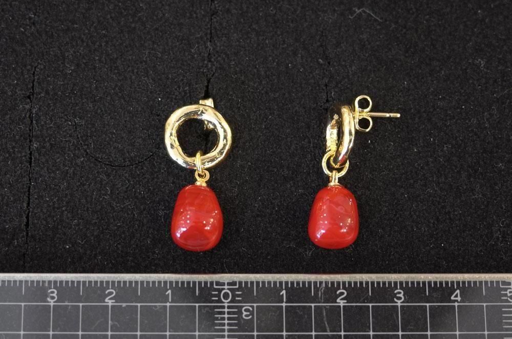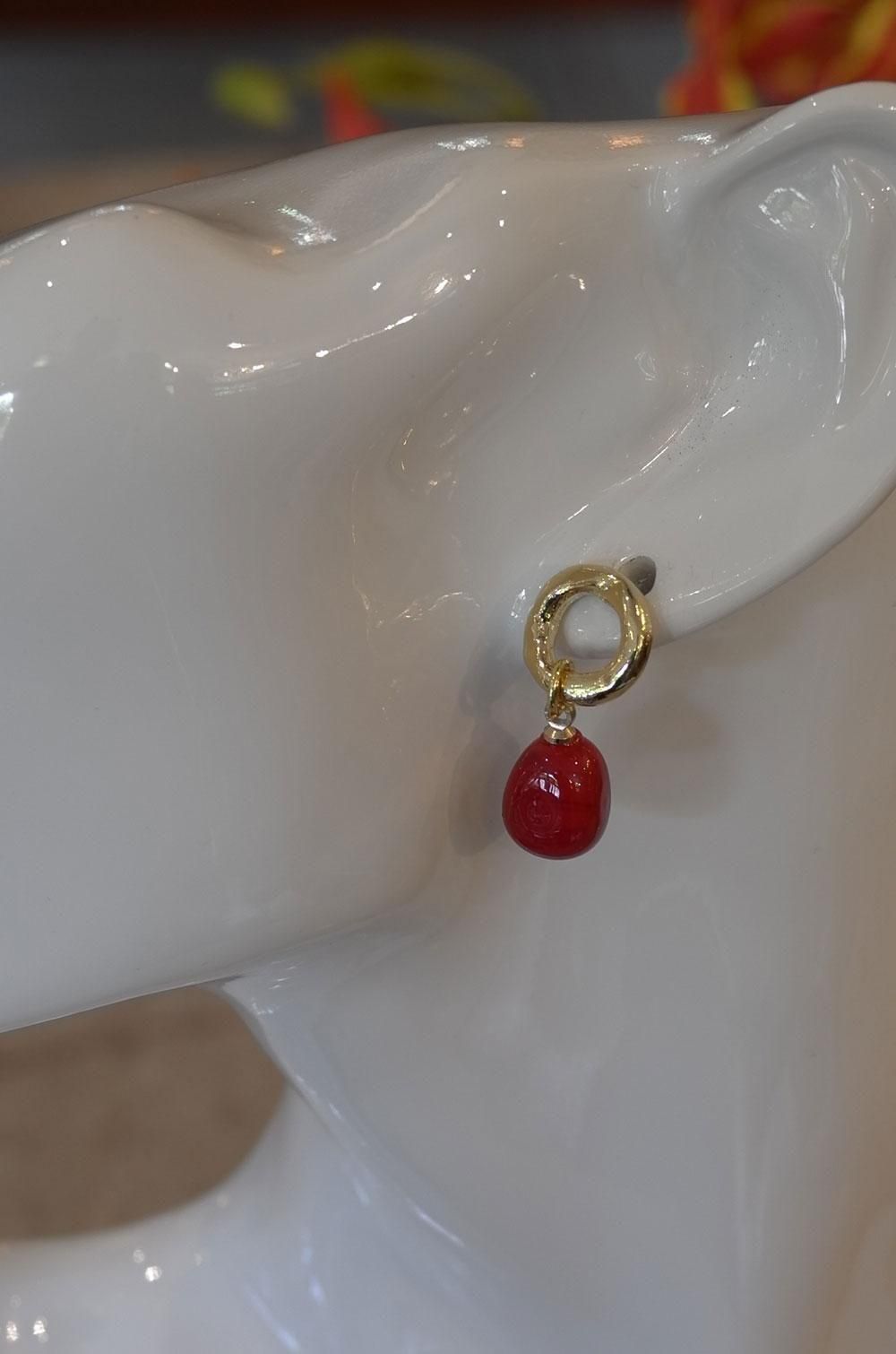 【フランス新品アクセサリーレディース】ピアス 赤ガラス 銀シルバー 金ヴェルメイユ フランス作家 スウィング モダン ファッション パリ