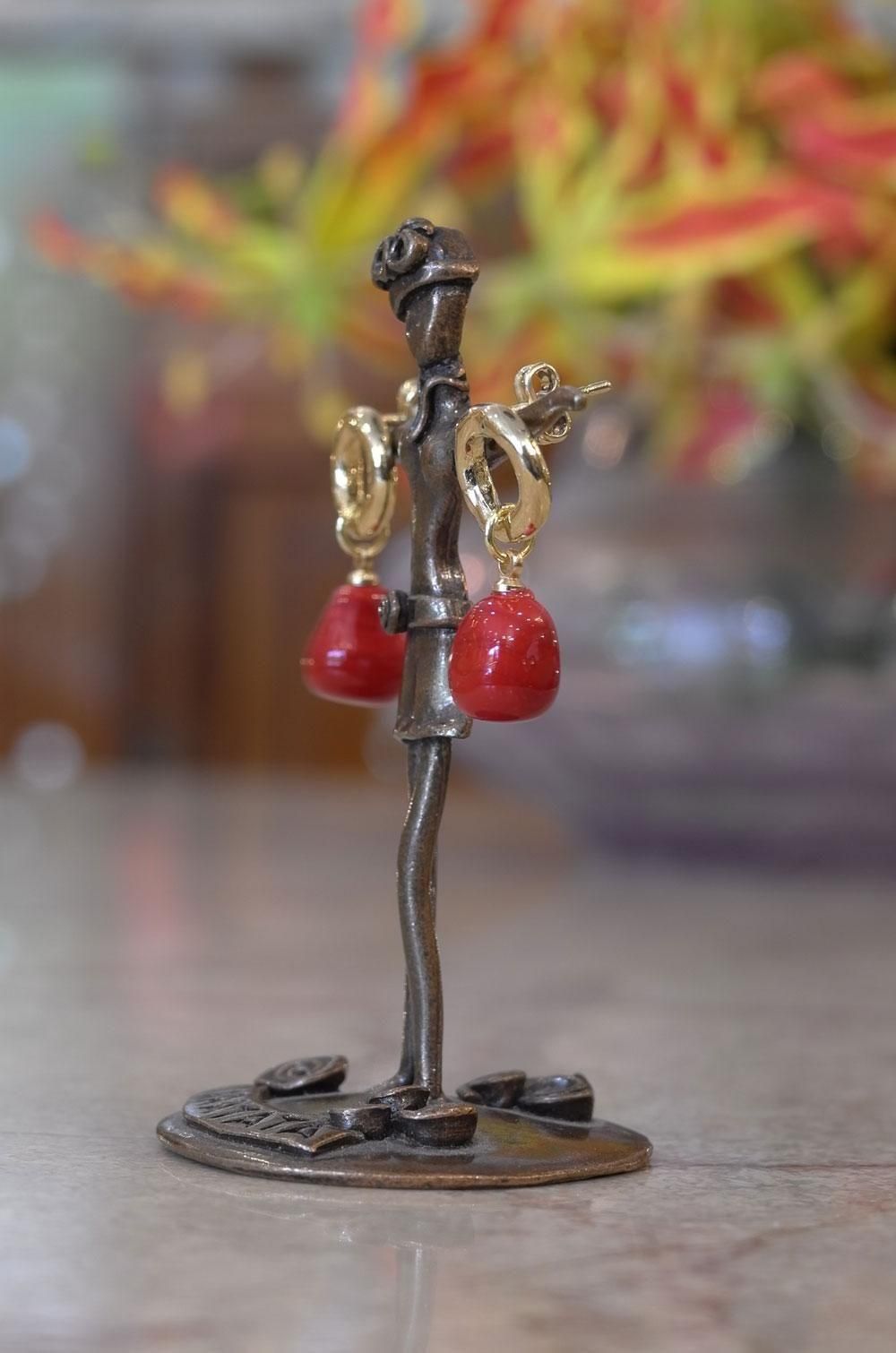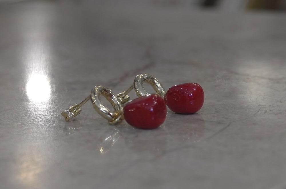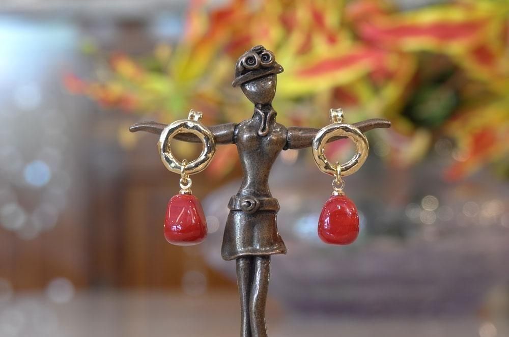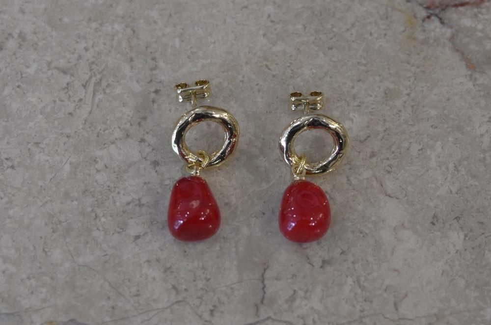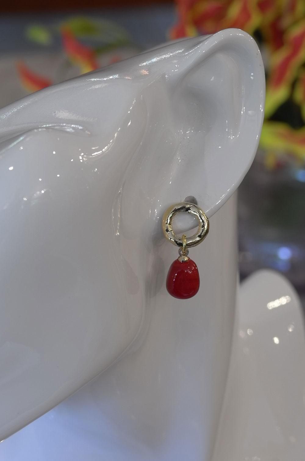 【フランス新品アクセサリーレディース】ピアス 赤ガラス 銀シルバー 金ヴェルメイユ フランス作家 スウィング モダン ファッション パリ