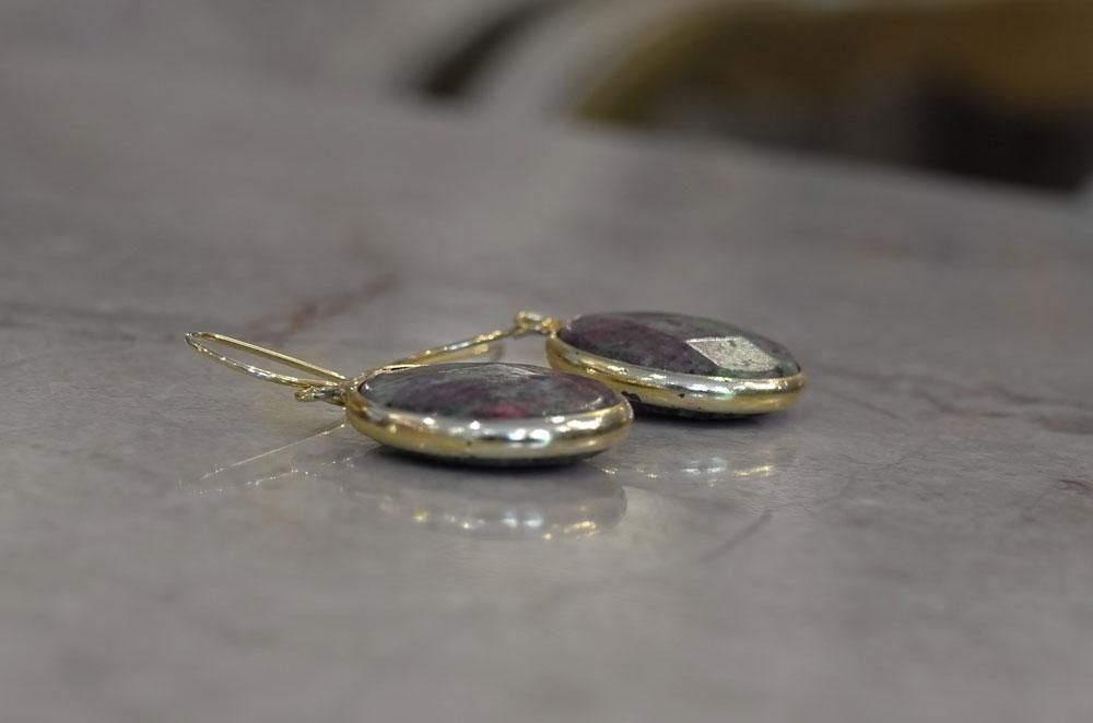 【フランス新品アクセサリーレディース】ピアス 丸 天然石ダイアスポア シルバー 金ベルメイユ イタリア作家 スウィング モダン ファッション パリ