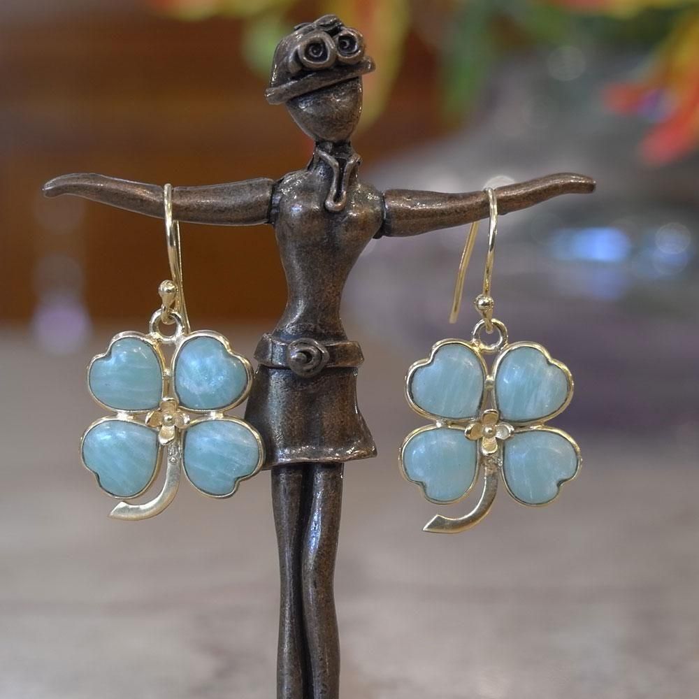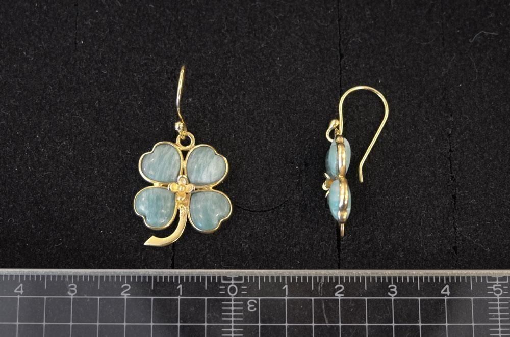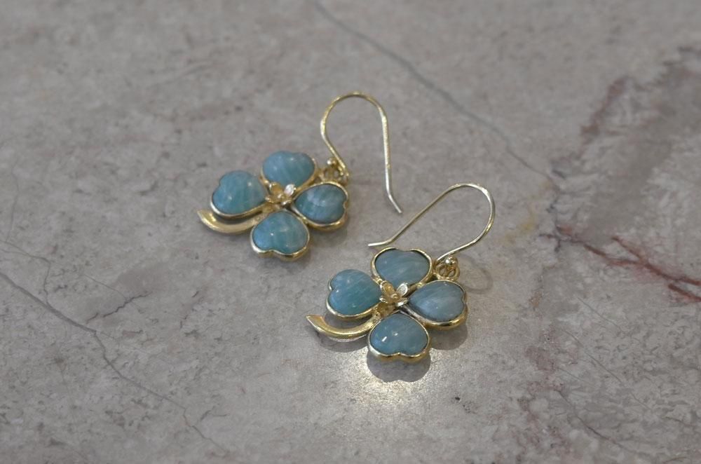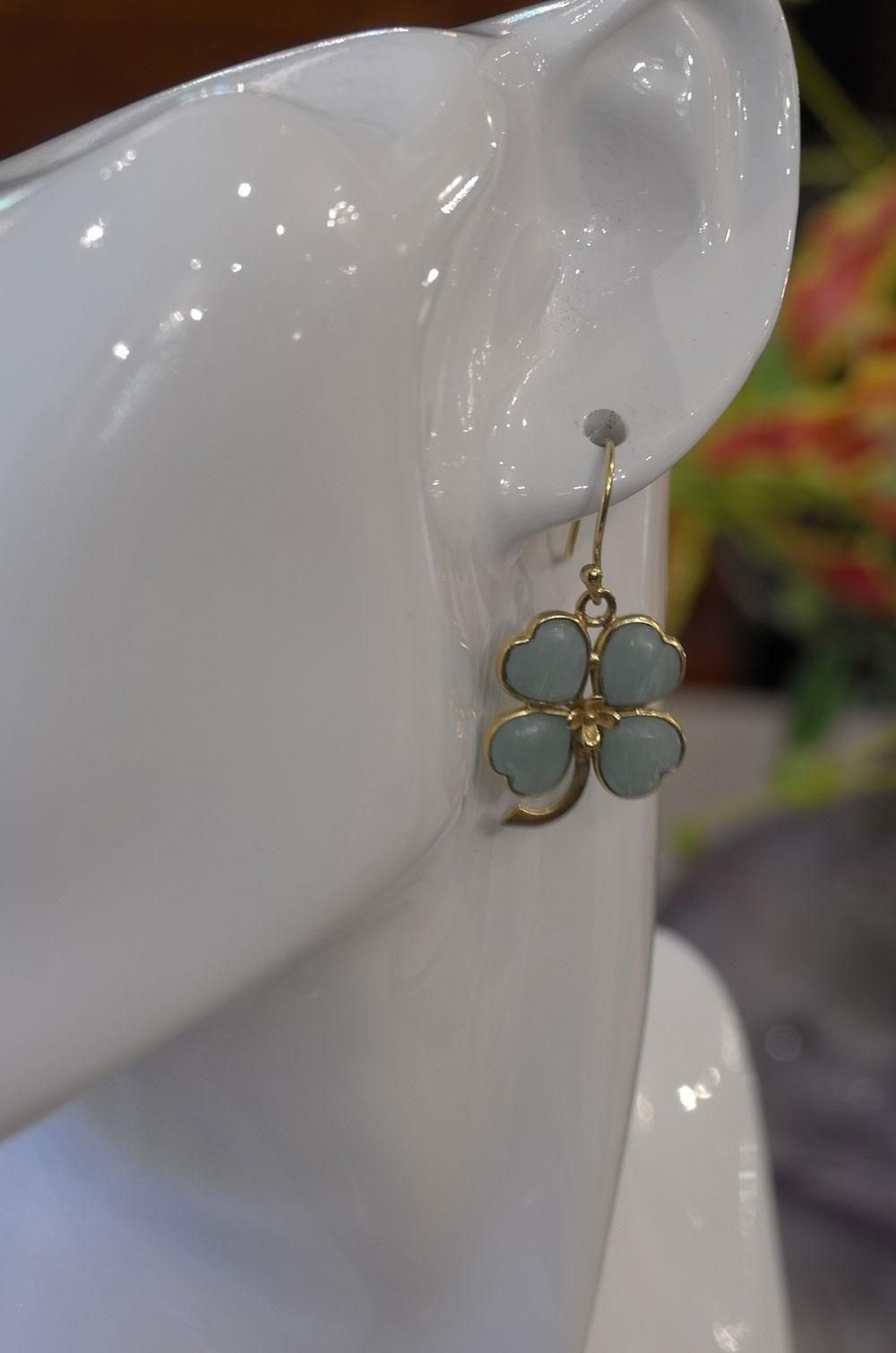 【フランス新品アクセサリーレディース】ピアス 四つ葉クローバー 水色天然石 銀シルバー 金ヴェルメイユ フランス作家 スウィング モダン ファッション パリ