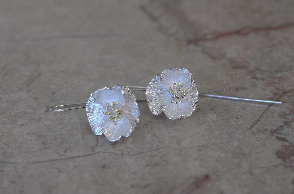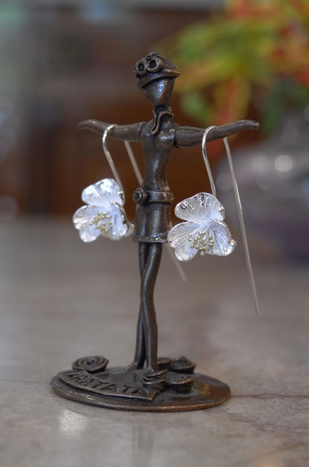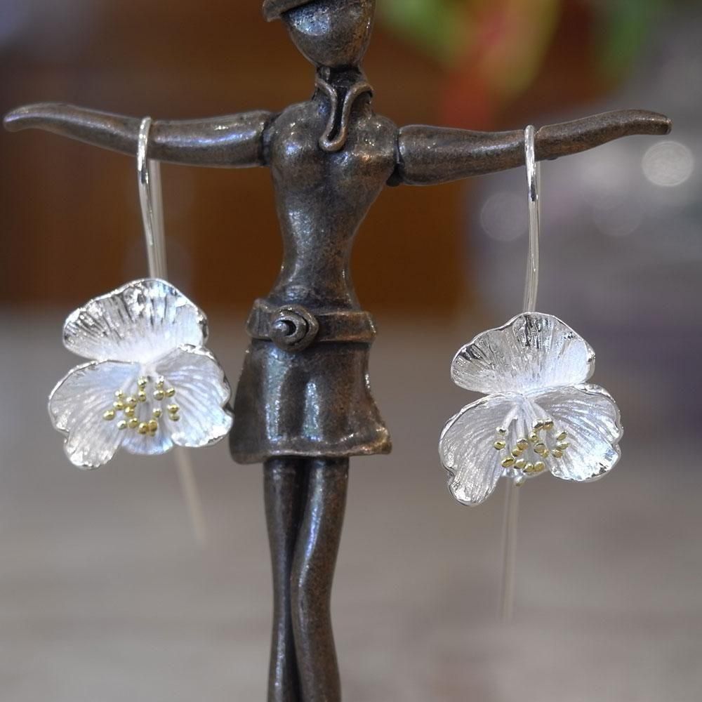【フランス新品アクセサリーレディース】ピアス 花フラワー 銀シルバー フランス作家 モダン ファッション パリ